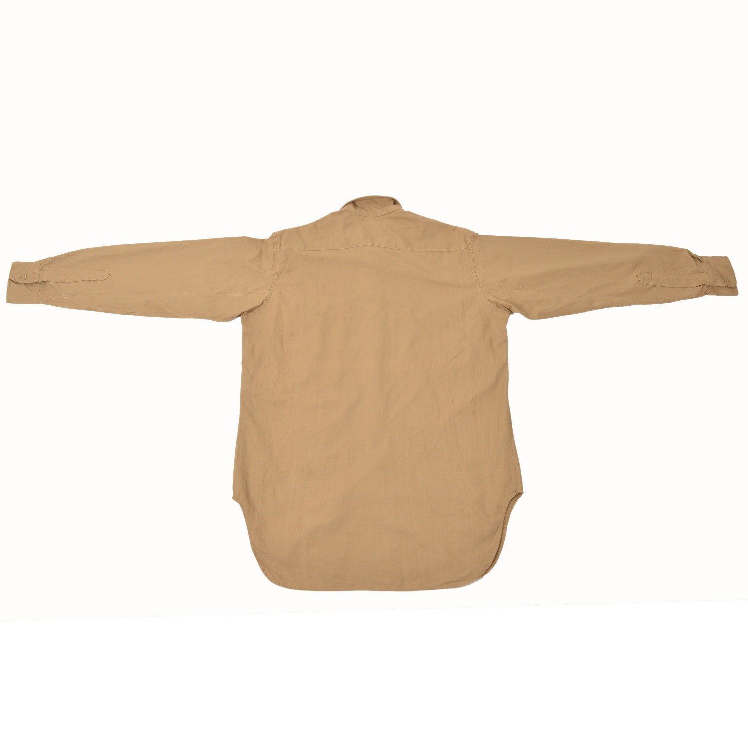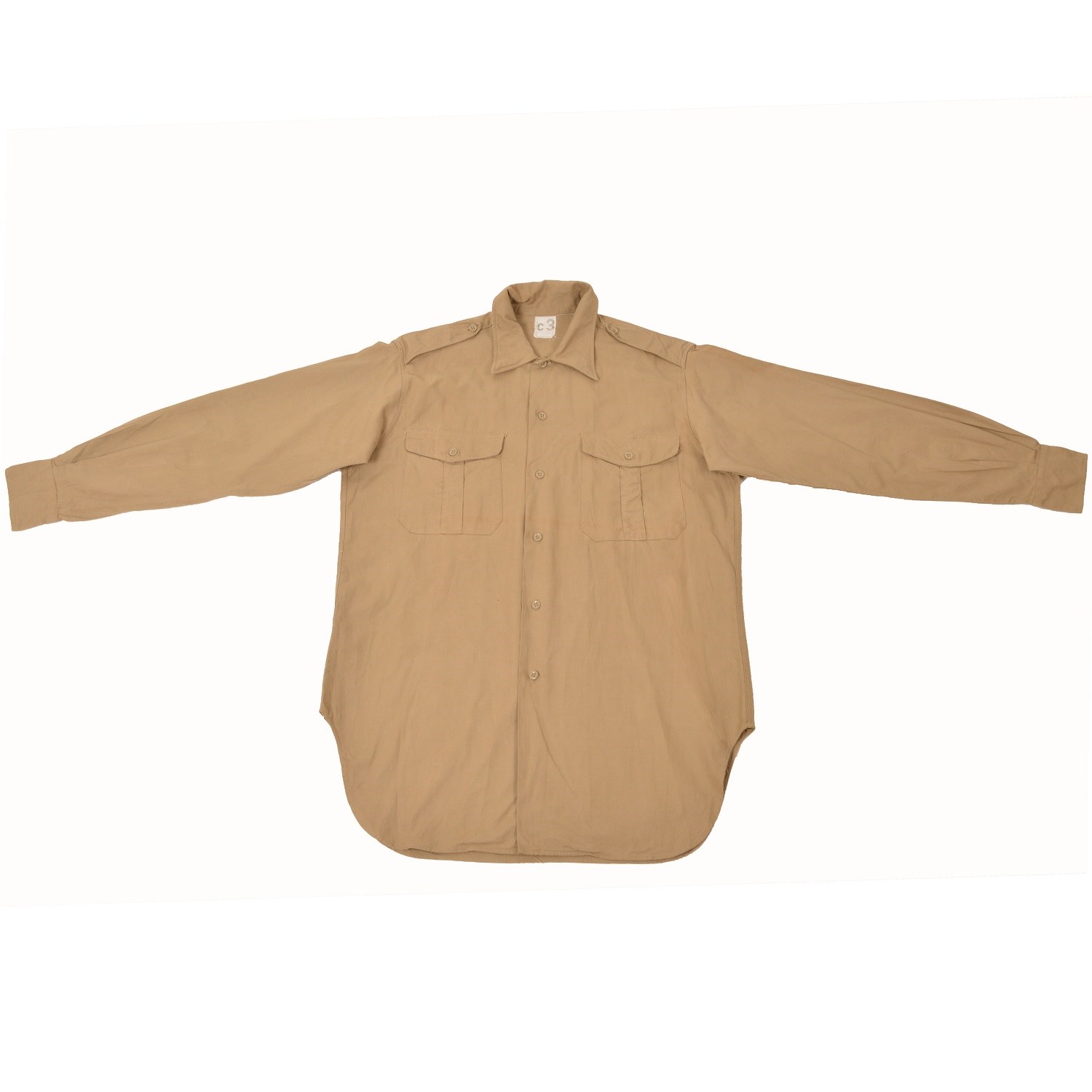 Camicia originale in tela proveniente dalle eccedenze dell'esercito francese. Materiale resistente e confortevole, colore sabbia. Due tasche con bottone sul petto.