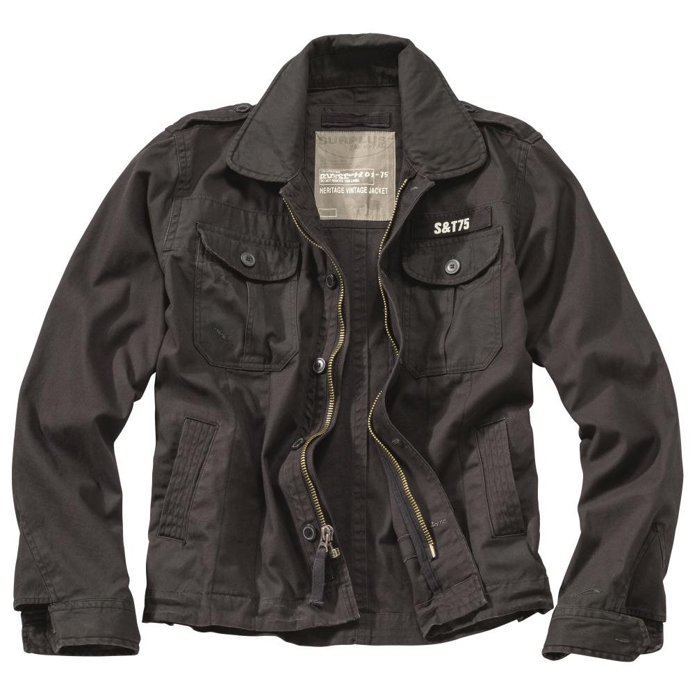 Leggera giacca Heritage della ditta Surplus ispirata alle giacche militari, ma adattata per l'uso quotidiano. Il tessuto in puro cotone è piacevole e resistente, le cuciture sono doppie. La chiusura con cerniera è coperta da una patta con bottoni.