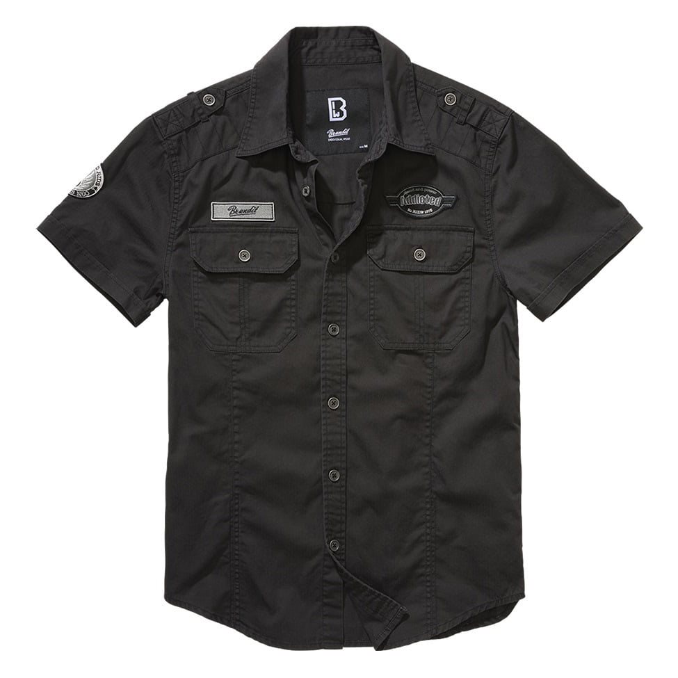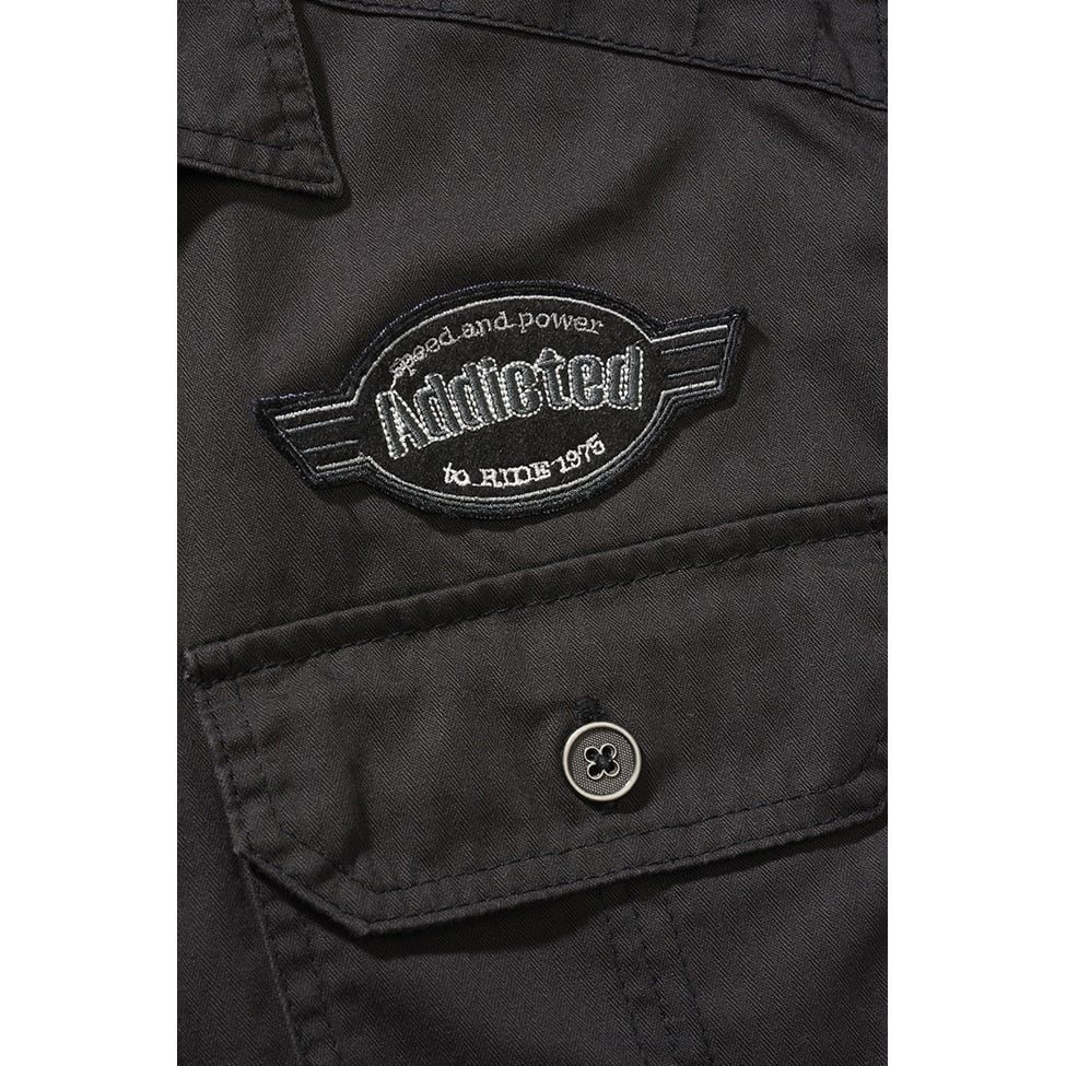 Comoda camicia dal taglio casual. Realizzata in morbido cotone dall'effetto leggermente slavato. Si chiude con bottoni classici e sul petto presenta due tasche con patta e bottoni. Il look della camicia è completato da tre toppe, spalline decorative e logo del produttore in versione metallizzata.