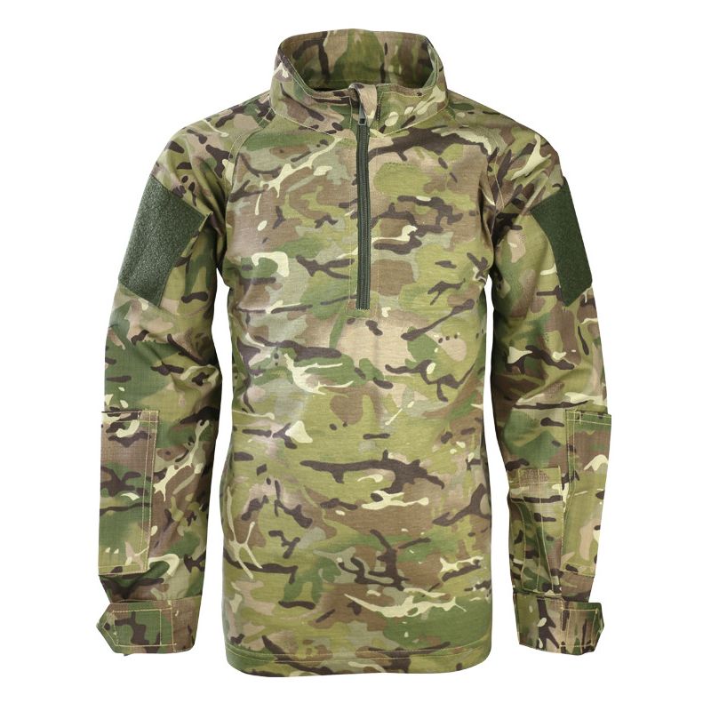 Camicia tattica progettata per bambini. Chiusura con cerniera. Sulle maniche sono presenti pannelli con chiusura in velcro per applicare patch. Larghezza dei polsini regolabile tramite cinturini con chiusura in velcro. Materiale: cotone. Ulteriori informazioni