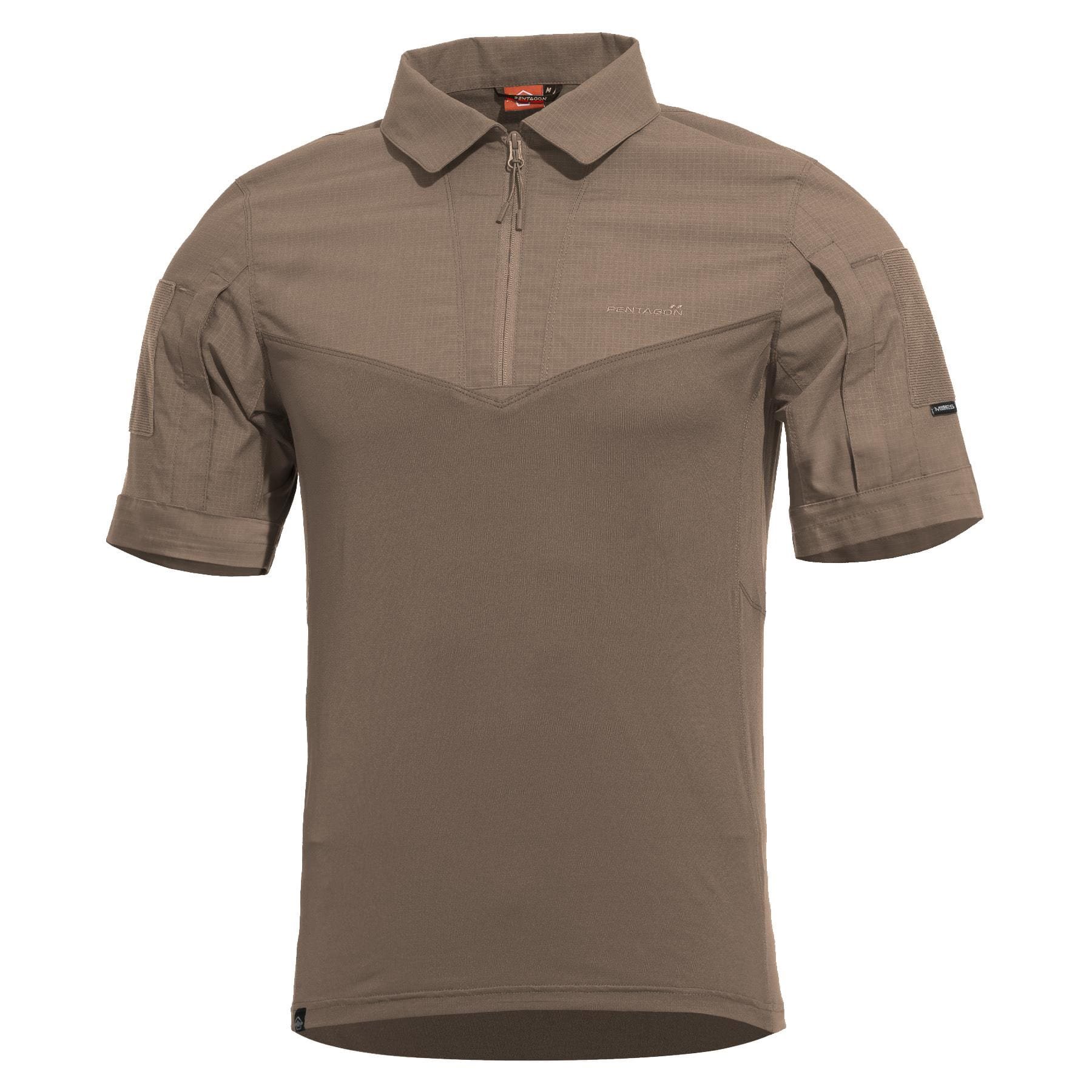 Camicia tattica traspirante a maniche corte, ideale per l'uso nella stagione calda. Per la realizzazione della camicia è stato utilizzato, nella parte superiore, un tessuto misto rip-stop bielastico e, nella parte inferiore, un tessuto elastico. Questo materiale è dotato di un trattamento superficiale al Teflon, si asciuga rapidamente e, grazie alle sue proprietà antibatteriche, resiste naturalmente alla formazione di odori durante l'uso quotidiano. Naturalmente, le cuciture piatte garantiscono il massimo comfort durante l'uso.