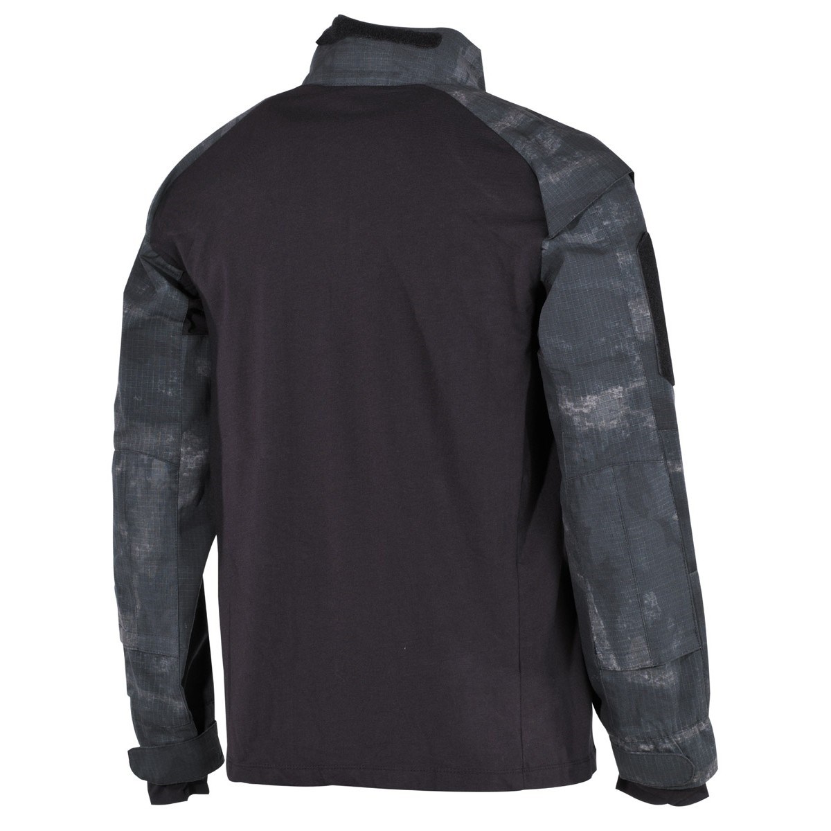 Oltre alle parti in cotone, le maniche sono dotate di diverse tasche. Su entrambi gli avambracci è presente una tasca piatta con cerniera, sulla cui parte superiore, sul braccio destro, è presente un'altra tasca che riproduce le dimensioni di quella inferiore e che può essere chiusa con velcro. Per facilitare l'apertura della tasca, nella zona di chiusura è cucito un breve occhiello in poliestere. Sull'avambraccio sinistro, nella parte superiore della tasca, è presente una tasca cucita, destinata a contenere una penna, una piccola torcia, ecc. La camicia presenta quindi un totale di 6 tasche. Gli avambracci sono rinforzati ed è possibile inserirvi un'imbottitura. Su entrambi i bicipiti sono presenti delle tasche che si chiudono con una cerniera piatta e sulla cui parte superiore, sul lato destro, è presente un'altra tasca che riproduce le dimensioni di quella inferiore e può essere chiusa con del velcro. I gomiti sono rinforzati ed è possibile inserirvi un'imbottitura. Su entrambi i bicipiti sono presenti delle tasche che si chiudono con una cerniera piatta e sul lato esterno sono dotate di pannelli in velcro per le toppe. Le toppe in velcro possono essere visualizzate qui.Il colletto (alza collo) presenta un pannello in velcro sul retro, mentre le estremità della parte fissa della manica sono anch'esse dotate di velcro, che in questo caso non serve per fissare le toppe, ma per regolare la lunghezza/larghezza della manica.