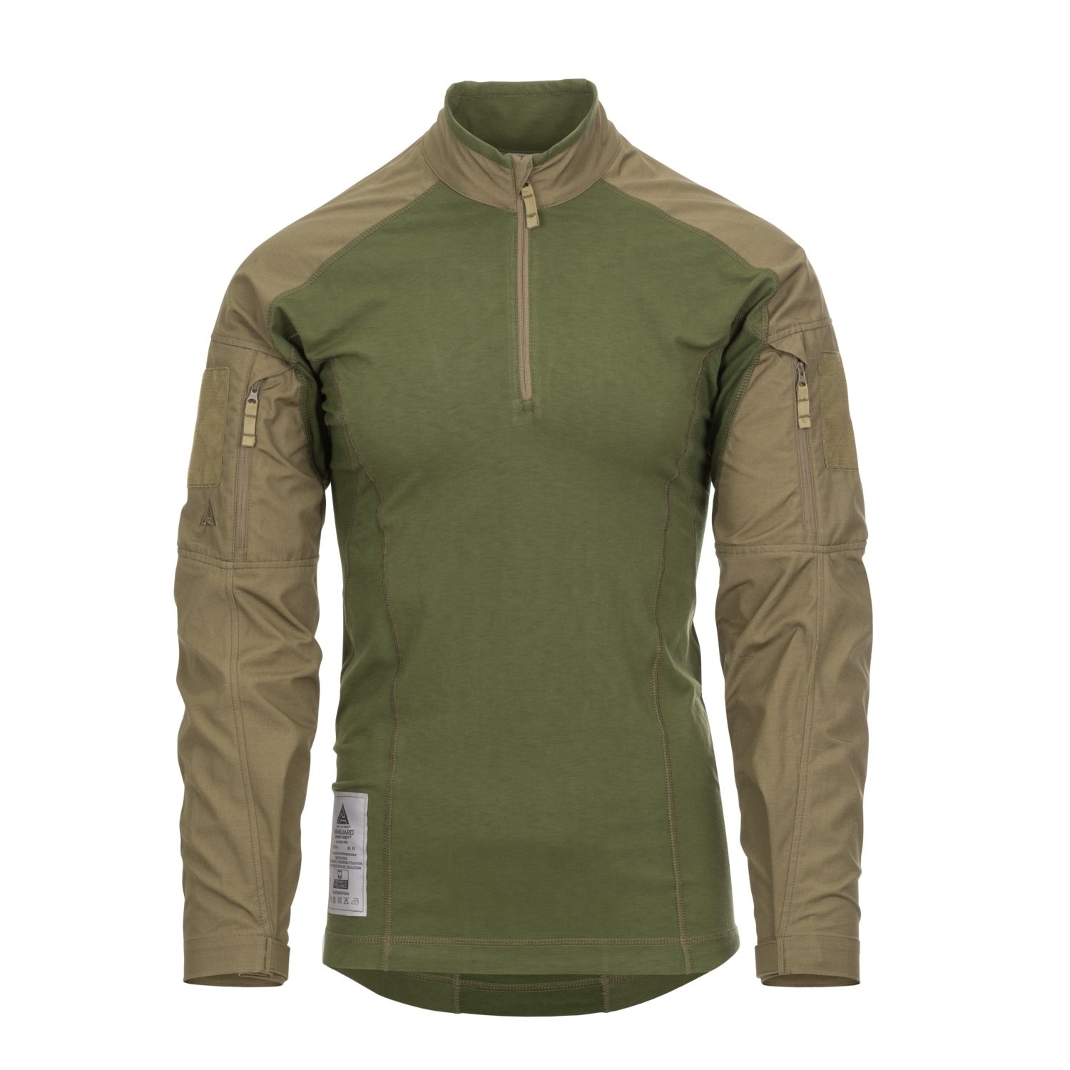 Un'uniforme confortevole è uno degli elementi più importanti dell'equipaggiamento da portare con sé sul campo di battaglia. Dovrebbe proteggere dall'ambiente circostante e allo stesso tempo offrire la massima libertà di movimento. Per questo motivo, la camicia tattica VANGUARD è realizzata con materiali di altissima qualità. Il corpo della camicia è realizzato in Polartec® PowerDry FR, un materiale non solo molto piacevole al tatto, ma anche elastico e in grado di assorbire efficacemente l'umidità dal corpo. Le maniche della camicia sono realizzate in tessuto NYCO estremamente resistente, che vanta anche un'ottima traspirabilità. La larghezza dei polsini della camicia può essere regolata tramite velcro. I rinforzi nella zona dei gomiti, che fungono da tasche per le protezioni, sono realizzati in materiale Cordura® 500D. Sui bicipiti di entrambe le maniche sono presenti piccole tasche piatte con chiusura a zip, ideali per riporre piccoli oggetti. Le tasche sono dotate di un piccolo pannello in VELCRO per la personalizzazione con toppe in velcro.