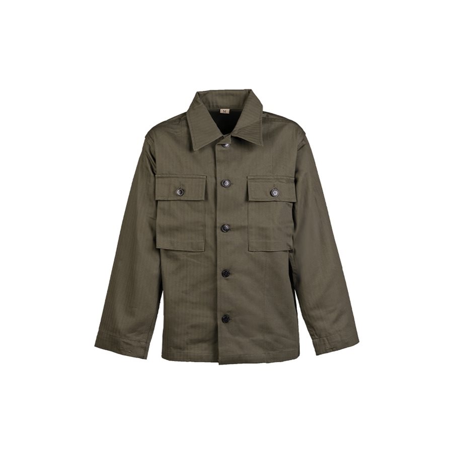 Riuscita riproduzione della classica giacca americana HBT in versione per bambini. La giacca si chiude con bottoni, ha due tasche sul petto e collo alto. Materiale: 100% cotone.