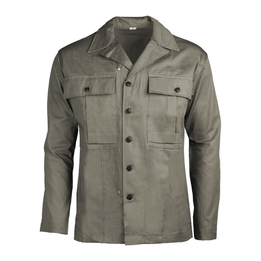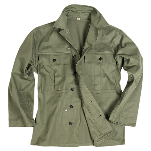 Copia di alta qualità della camicia US HBT. Due ampie tasche sul petto con chiusura a bottoni. Chiusura con bottoni in metallo. Colore: verde (oliva). Materiale: 100% cotone. Si prega di specificare nelle note l'altezza e la circonferenza del torace. Ulteriori informazioni