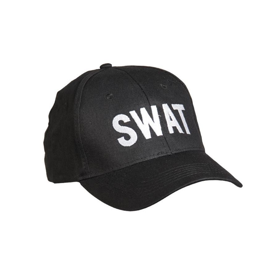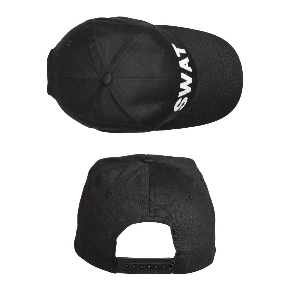 Cappellino da baseball universale in cotone nero con scritta SWAT. La taglia è regolabile tramite una fascia in plastica. Materiale: 100% cotone pettinato Ulteriori informazioni