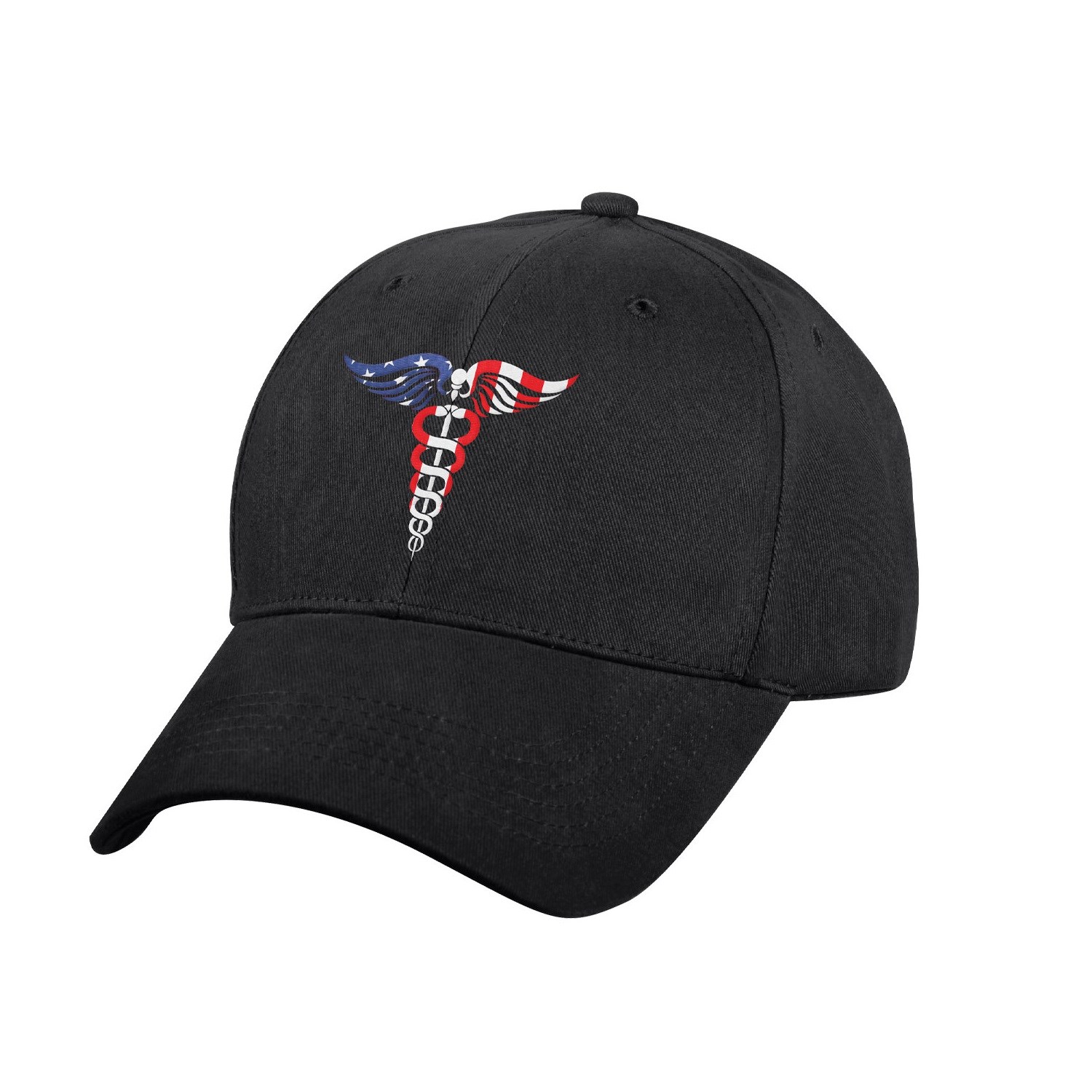 Cappellino a visiera dal profilo basso, noto come cappellino da baseball, con il simbolo denominato Caduceo.