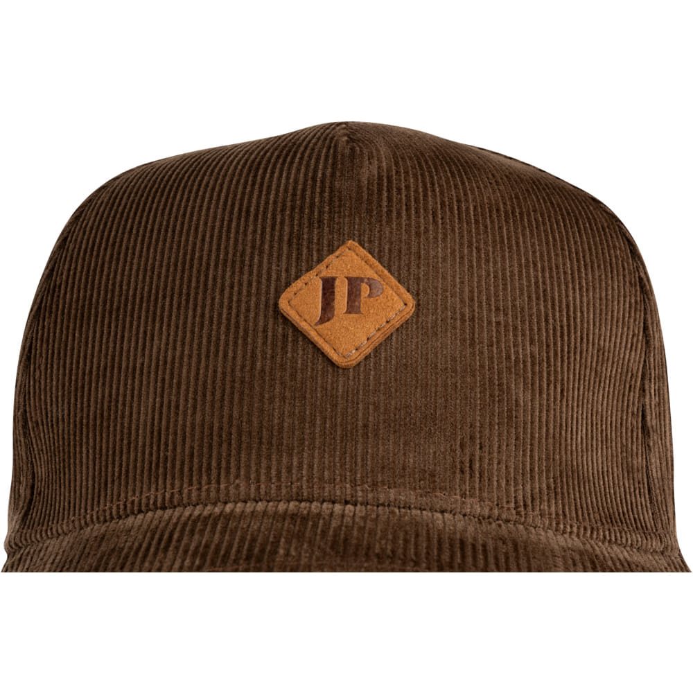 Cappellino dall'aspetto insolito realizzato in velluto a coste di poliestere. Il tessuto è caratterizzato da una marcata "rigatura" superficiale. La visiera è piuttosto ricurva e sulla parte frontale è cucito il logo Jack Pyke. Il cappellino è regolabile nella parte posteriore.