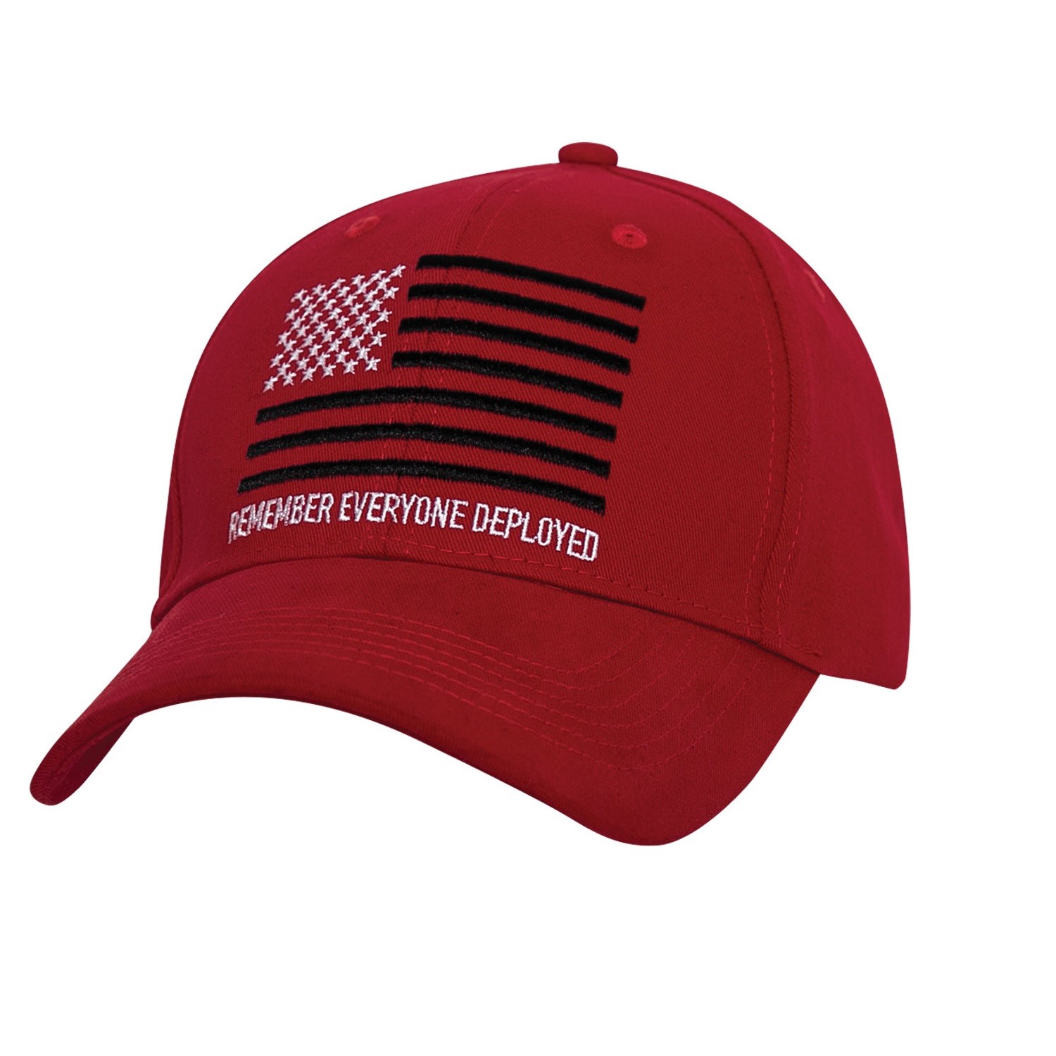 Su sfondo rosso, bandiera americana - stelle bianche, strisce nere e scritta "Remember Everyone Deployed" (R.E.D.). Taglia universale grazie al cinturino con velcro sul retro. Sopra il cinturino è ricamata in nero l'abbreviazione R.E.D. 6 fori di ventilazione cuciti. Il cinturino è regolabile grazie a una linguetta con velcro. Il cinturino è regolabile grazie a una linguetta con velcro.