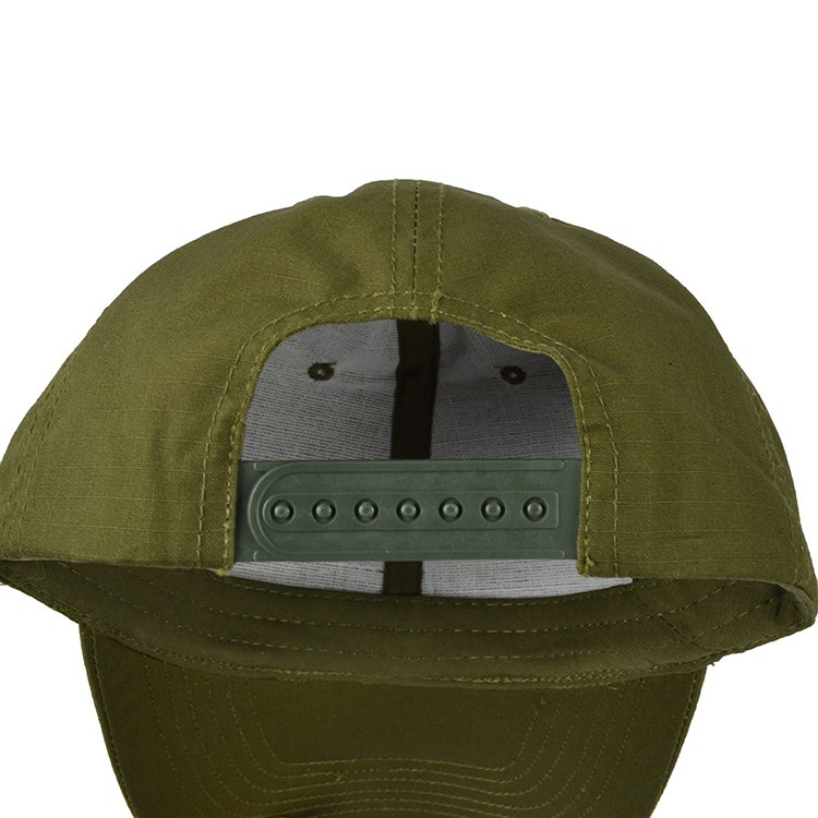 Cappellino militare di colore verde oliva, in tessuto rip-stop. Taglia unica.