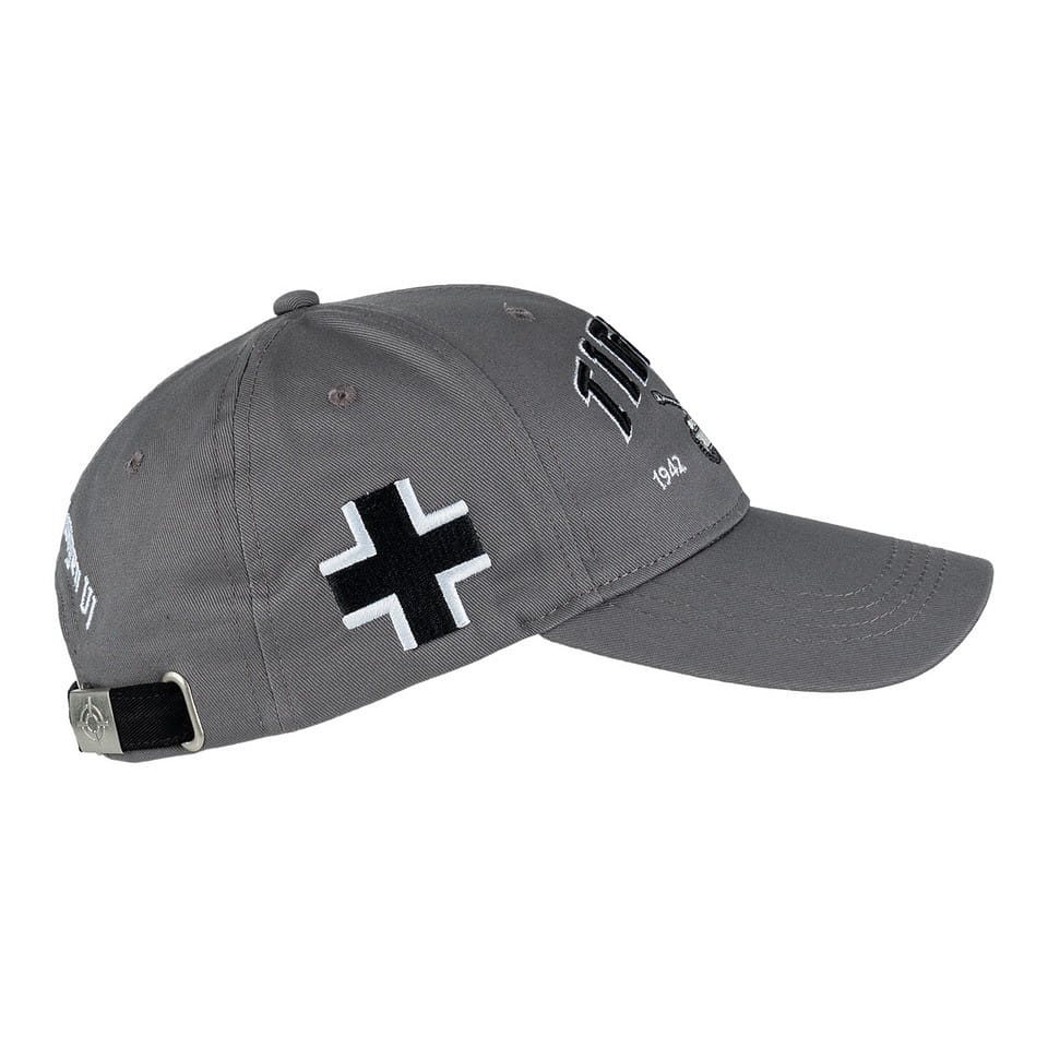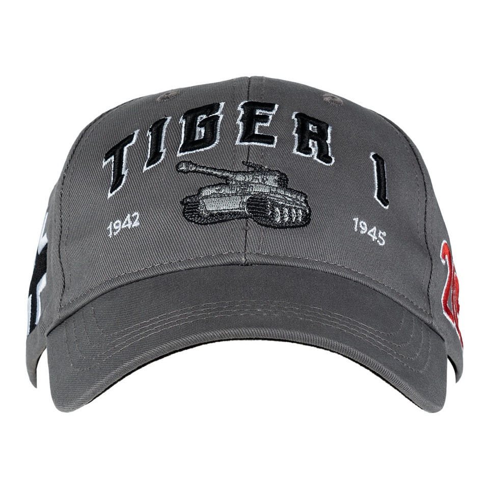 Cappellino da baseball destinato ai fan del leggendario carro armato della Seconda Guerra Mondiale TIGER I. Il cappellino è provvisto della scritta TIGER I, della data di produzione del carro armato (dal 1942 al 1945), del numero 205 e della scritta Panzerkampfwagen VI.