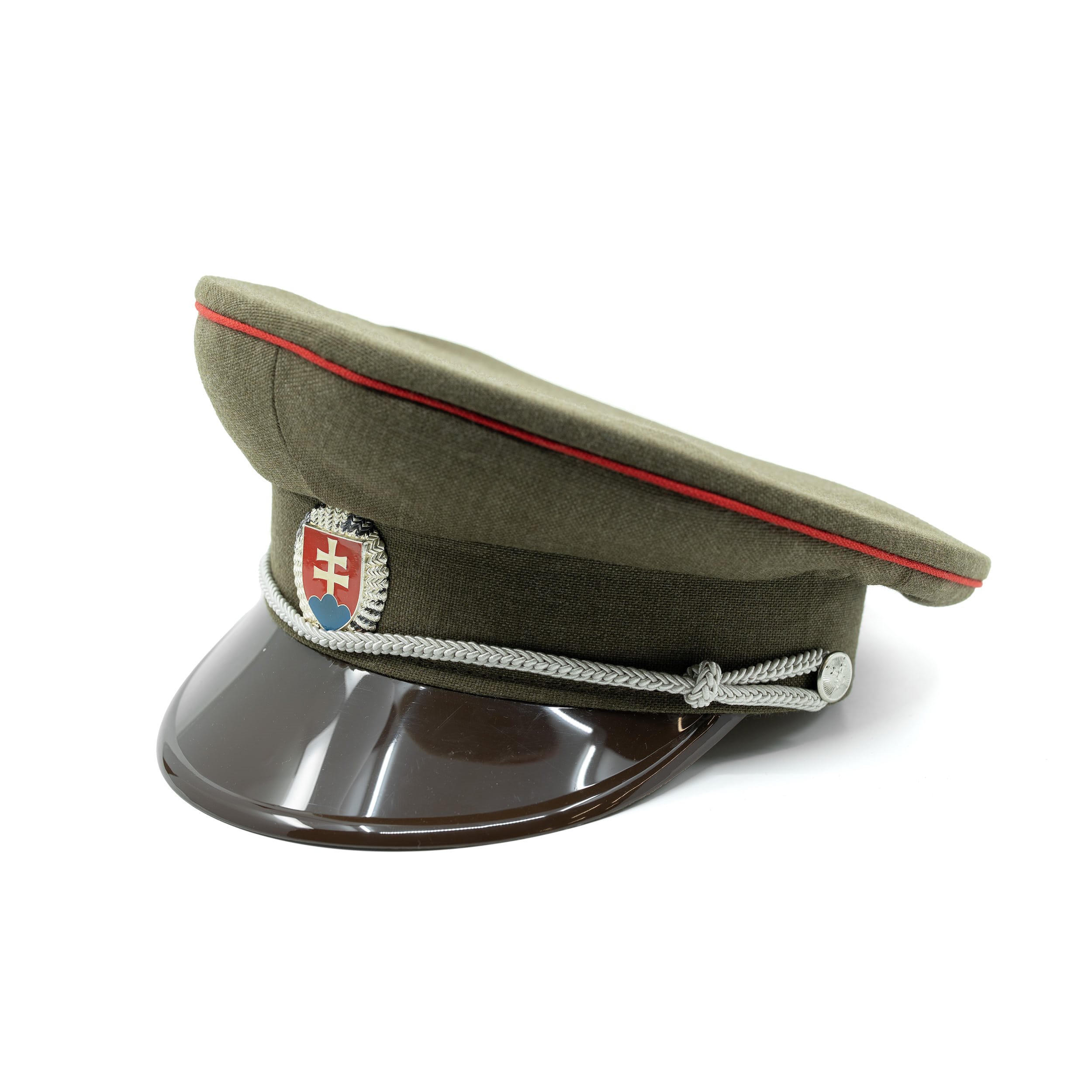 Cappellino da brigadiere SK distintivo argentato, visiera in plastica, linea rossa VERDE