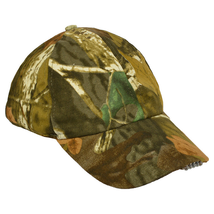 cappellino da caccia con visiera, stampa WILDFOWL - 5 LED integrati nella visiera (alimentazione con 2 batterie da 3 V), interruttore nella visiera, parte ribaltabile sopra le orecchie per proteggere dal freddo, materiale: 100% cotone lucido con Ulteriori informazioni