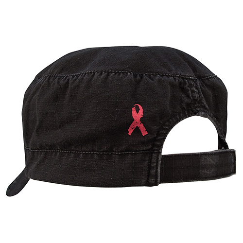 Cappellino militare da donna con visiera in stile vintage. Con simbolo contro il cancro al seno. Taglia universale regolabile. Materiale: 100% cotone prelavato in versione rip-stop.