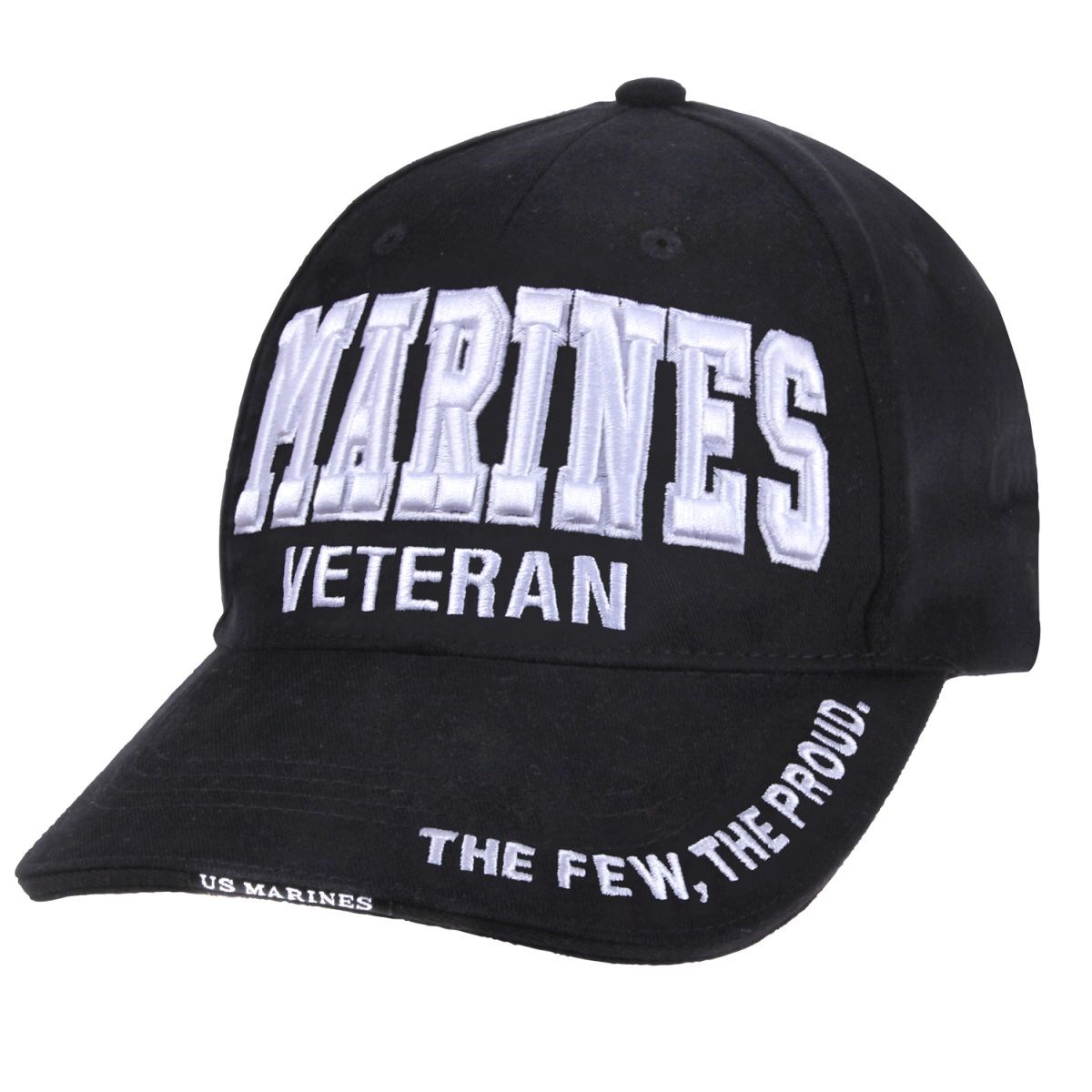 Cappellino a visiera bassa con scritta bianca ricamata in 3D MARINES (marines - corpo dei marines degli Stati Uniti - USMC) e scritta piatta VETERAN. Sulla visiera è la scritta The Few, The Proud (slogan di reclutamento dei marines) e sul bordo della visiera è presente la scritta US MARINES.