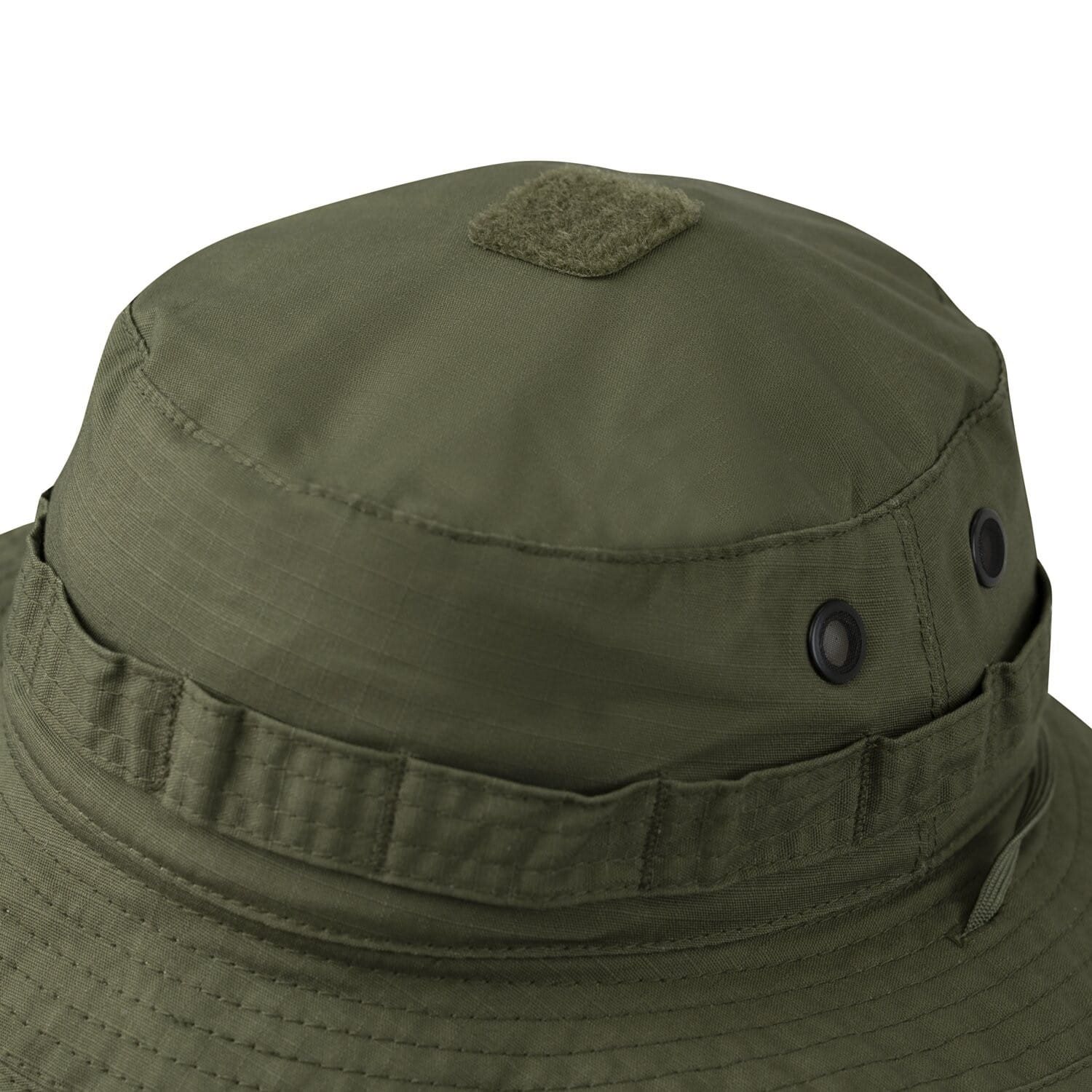 Evoluzione del leggendario cappello da combattimento, noto anche come "australiano". Per la sua produzione è stato utilizzato un materiale leggero e ad asciugatura rapida che consente di ripiegarlo in dimensioni compatte. Il cappello è dotato di fori che migliorano la ventilazione e di un materiale interno a contrasto che può essere utilizzato per segnalare situazioni di emergenza. Per la personalizzazione tramite toppe in VELCRO sono disponibili due pannelli in velcro. Il cordino di sicurezza del cappello può essere regolato tramite un fermo in plastica. Un piacevole extra è il passante per il fissaggio alle giacche RAID del marchio HELIKON.