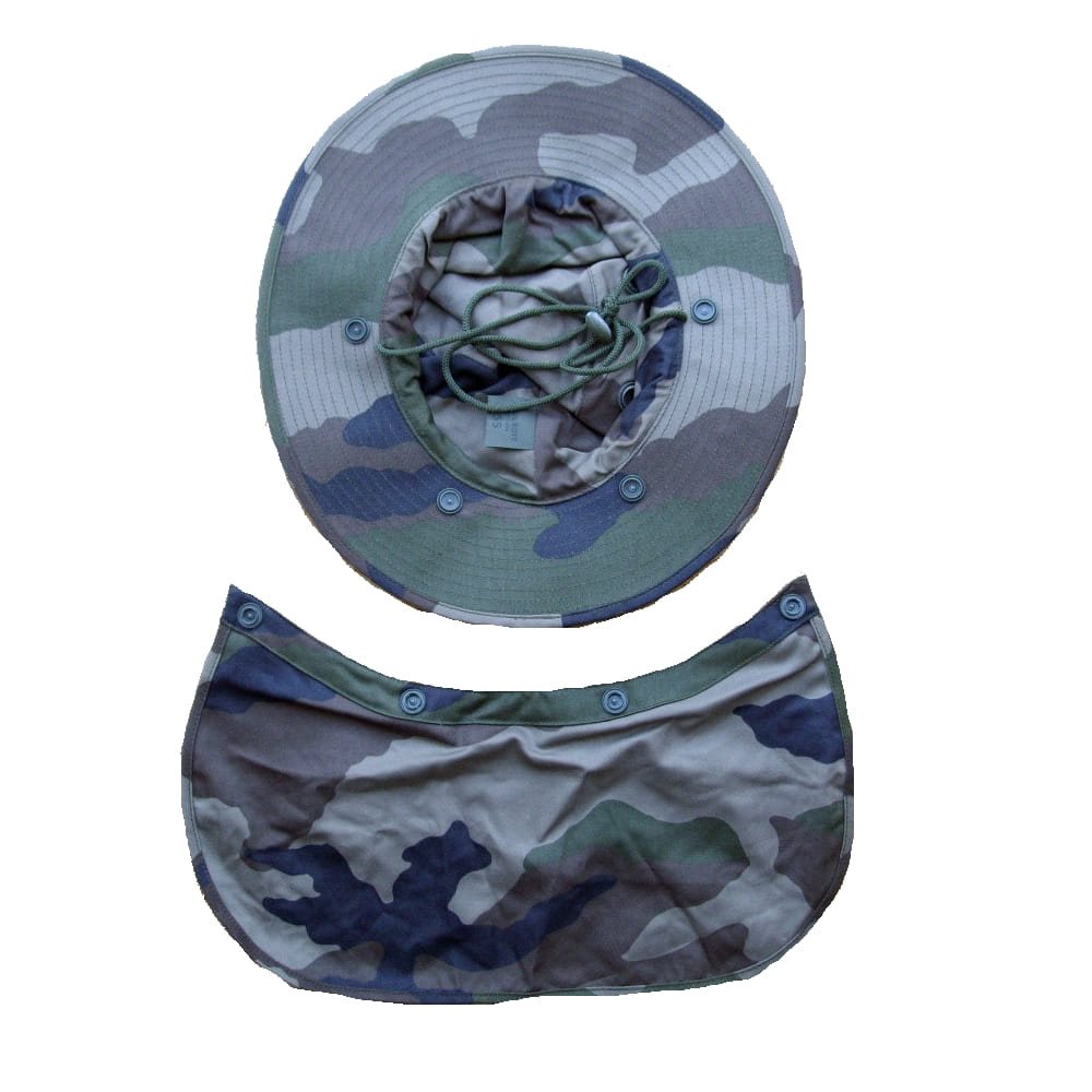 Cappello dell'equipaggiamento dell'esercito francese con protezione posteriore rimovibile.