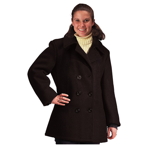 Elegante cappotto da donna in lana in stile marinaro (Peacoat). Realizzato in tessuto pesante con fodera in nylon trapuntata.