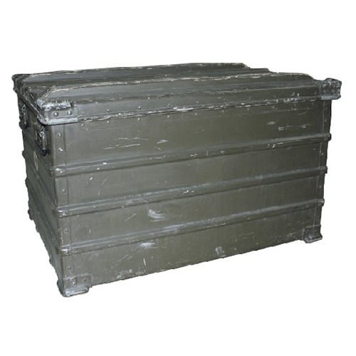 Robusta cassetta in alluminio con due serrature. Dimensioni: circa 70x53x55 cm.