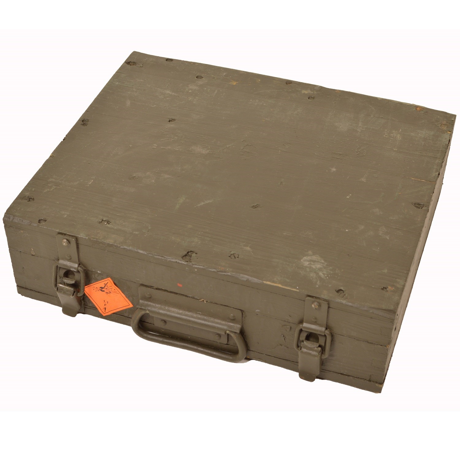 Cassa di legno usata con coperchio, da munizioni 82-EO-M. Dimensioni 39 x 32 x 11 cm. Ulteriori informazioni
