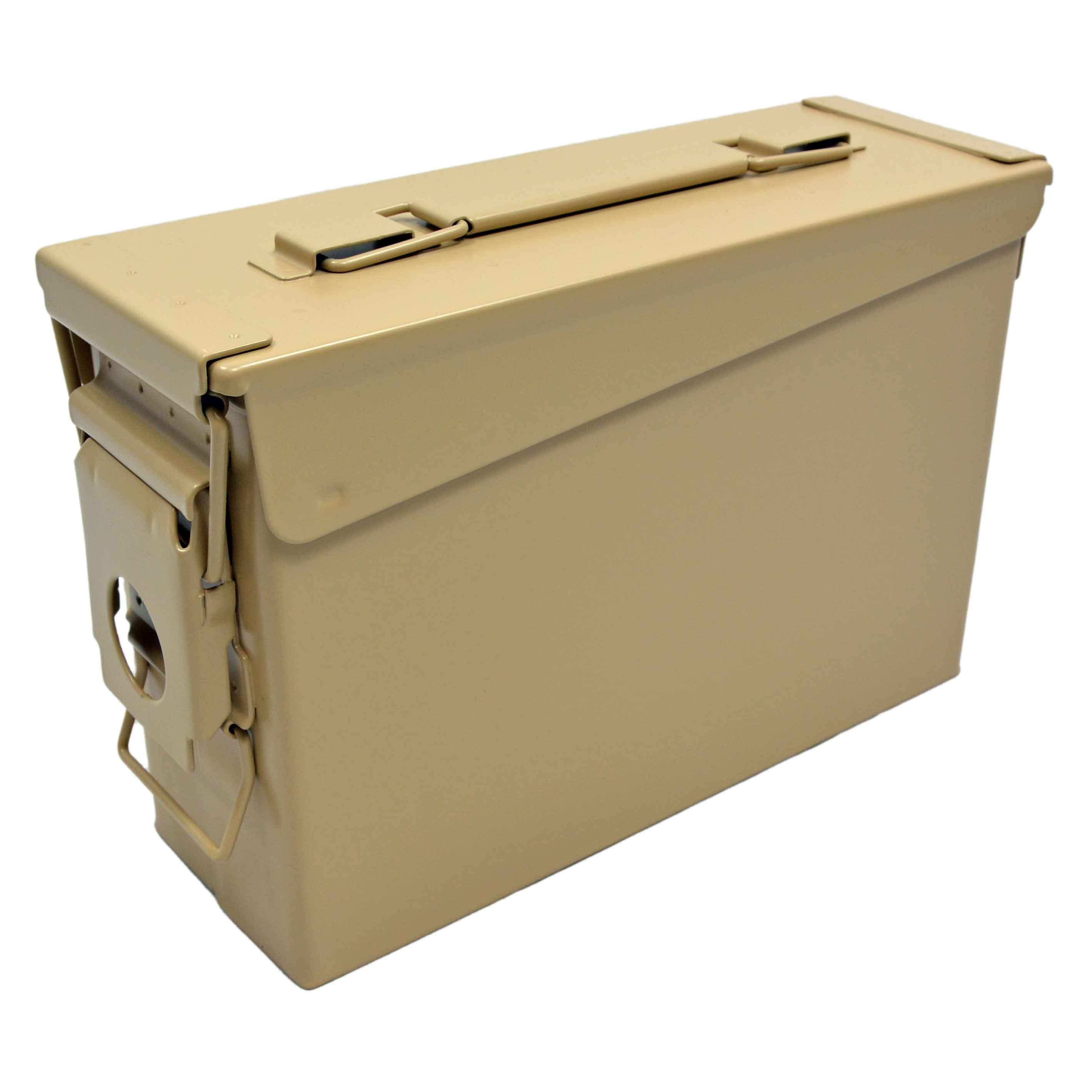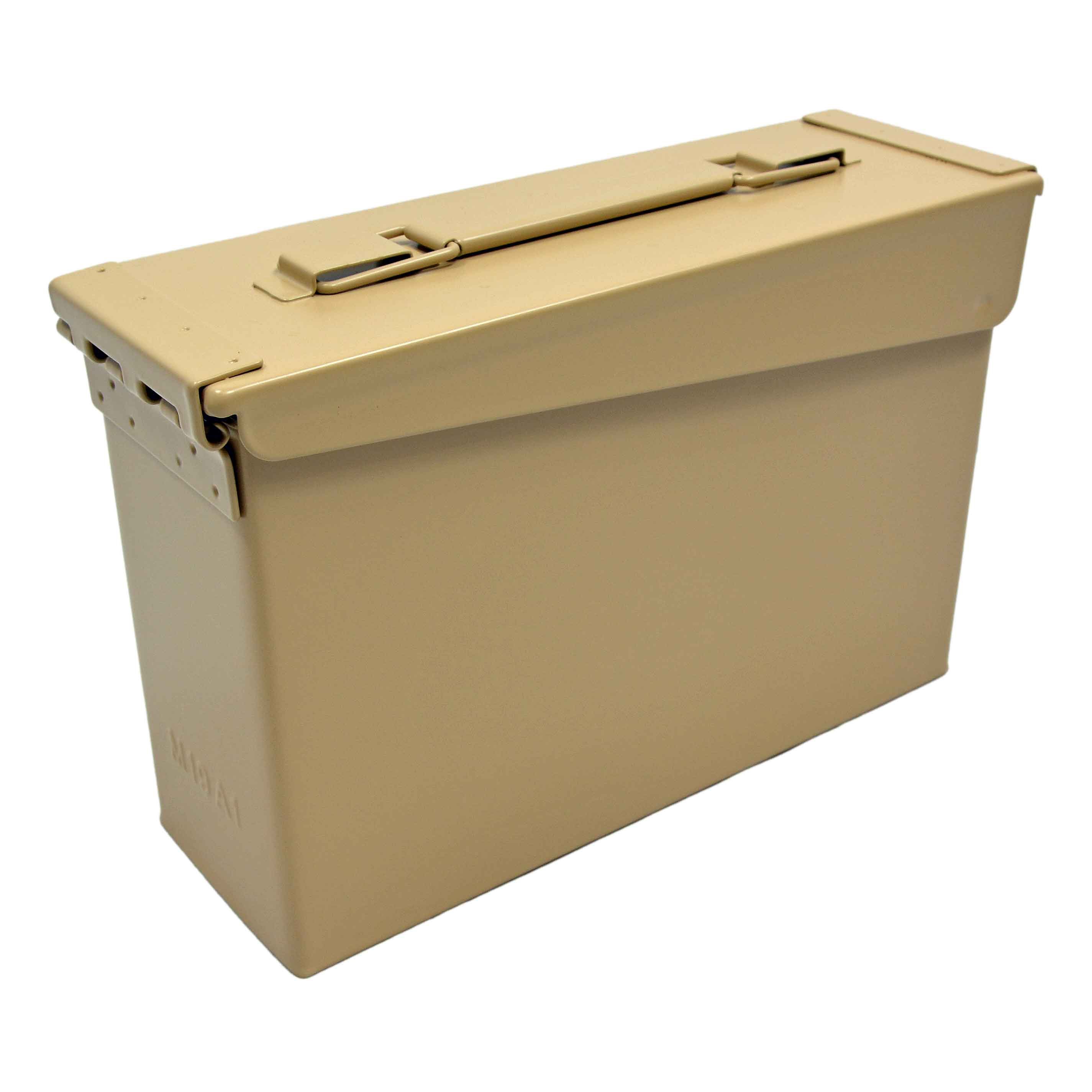Replica delle classiche casse per munizioni americane, realizzata in acciaio di alta qualità. La cassa è resistente agli spruzzi d'acqua, è dotata di maniglia per il trasporto e chiusura sicura.