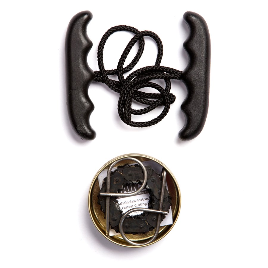 Catena da taglio brevettata estremamente potente. È pronta all'uso in pochi secondi e, una volta terminato il lavoro, può essere riposta in una scatola di dimensioni ridotte (inclusa nella confezione). È in grado di tagliare rami di 10 cm di spessore in pochi secondi.