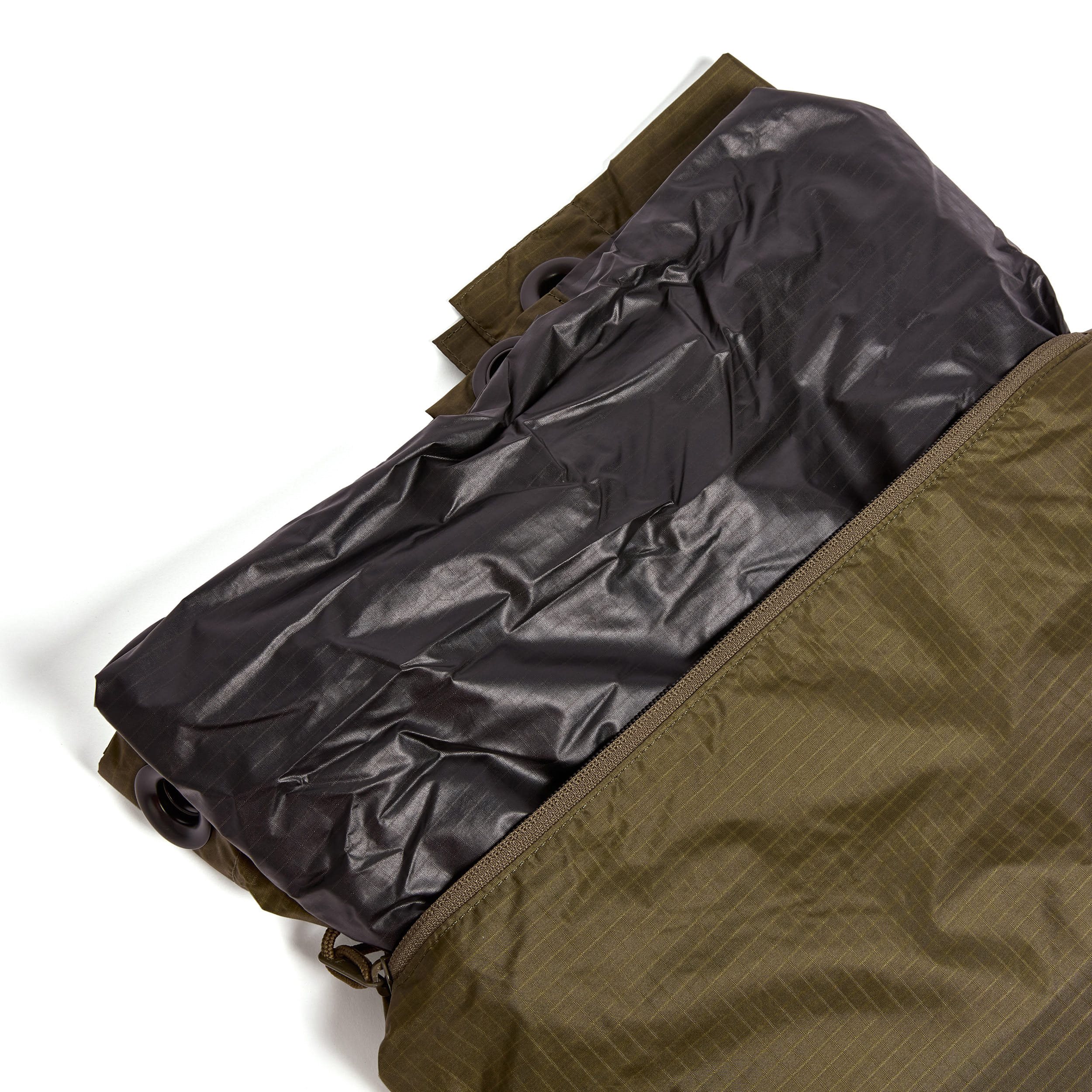 Telo impermeabile leggero realizzato in resistente nylon rip-stop con protezione dai raggi infrarossi (IR). Le cuciture del telo sono nastrate per massimizzare la resistenza all'umidità e alla pioggia.