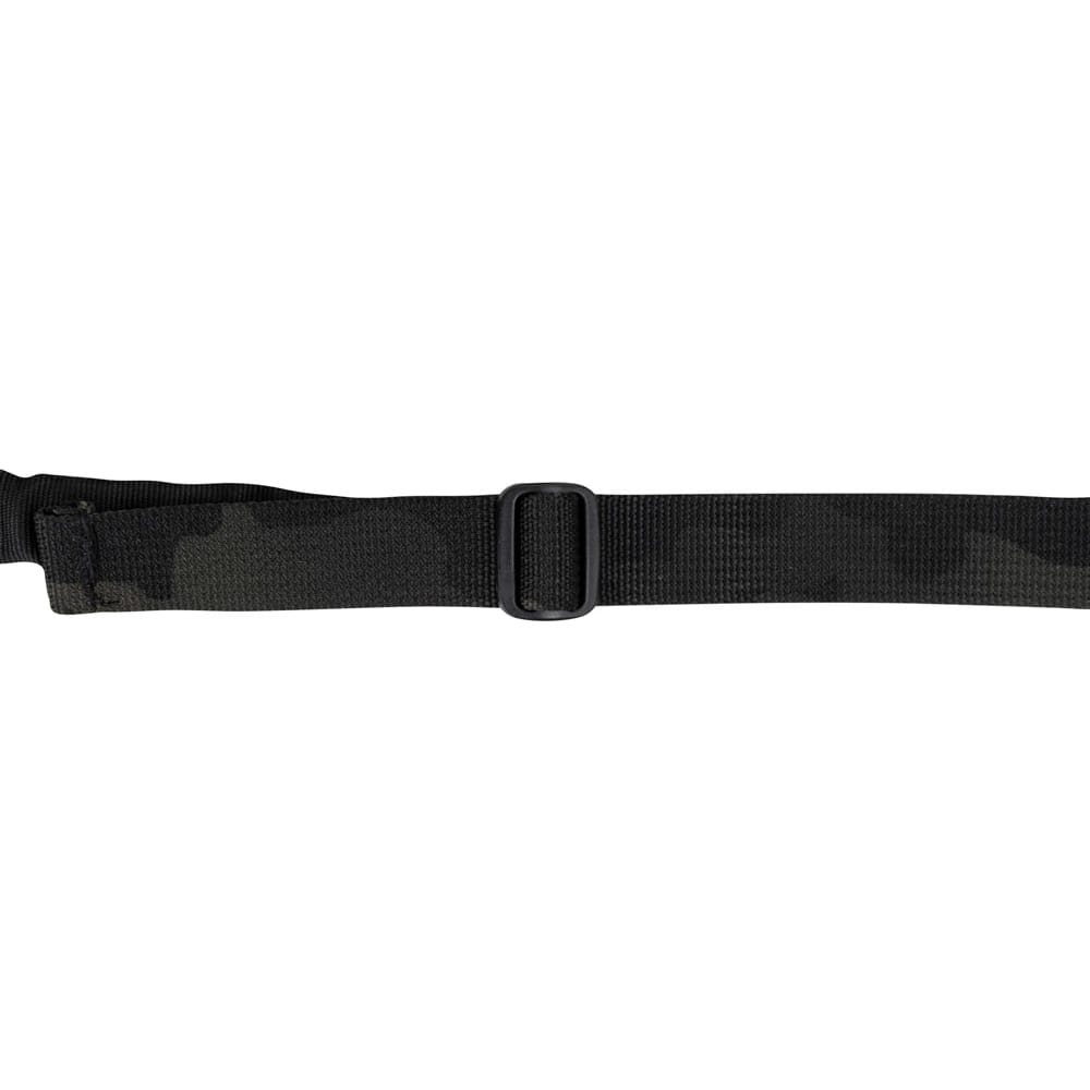 Semplice cinghia per arma a punto singolo compatibile con il sistema modulare MOLLE/PALS. La cinghia è fissata tramite un moschettone e può essere rapidamente sganciata tramite una fibbia FASTEX in plastica.