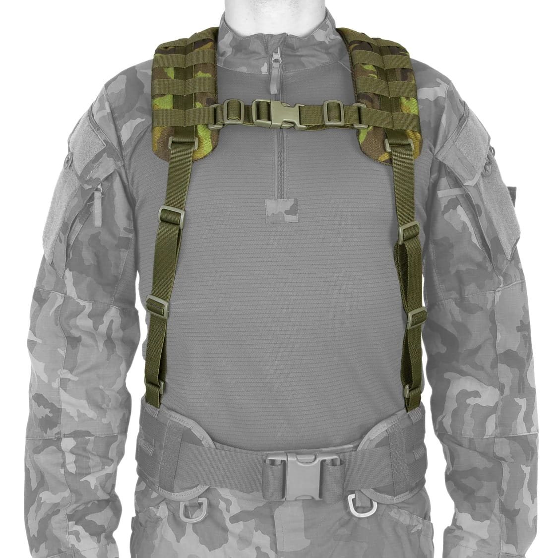 Le cinghie tattiche TP-2 sono progettate per essere utilizzate con cinture tattiche o di servizio. Trasferiscono parte del peso trasportato sulla cintura dai fianchi alle spalle. Hanno una struttura semplice a forma di H e un'ampia gamma di regolazioni, che consente di adattarle alle esigenze dell'utente. La parte delle cinghie che va sulle spalle è dotata di un'imbottitura cucita che distribuisce il carico sulle spalle. Sia sulla parte delle spalle che su quella della schiena è cucito un sistema di aggancio MOLLE per fissare ulteriori equipaggiamenti. Le cinghie tattiche TP-2 sono dotate di un gancio di evacuazione e di una cinghia pettorale.