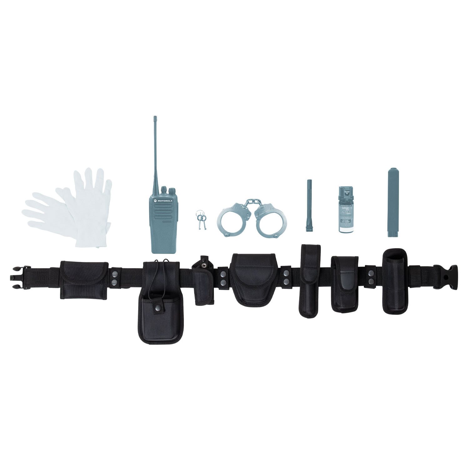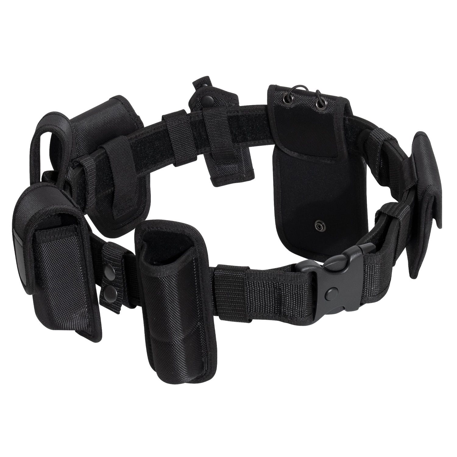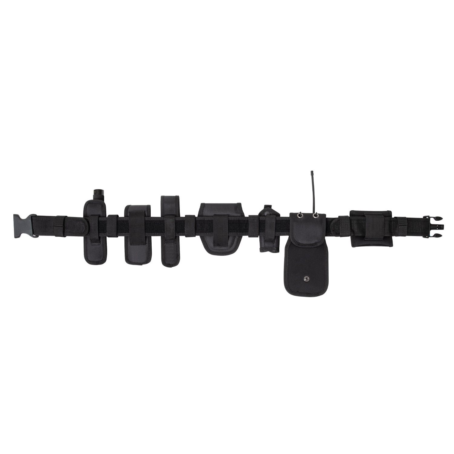 Set composto da cintura di servizio e diverse fondine compatibili. La cintura è realizzata in poliestere resistente, ha una larghezza di 5,5 cm ed è dotata di una robusta fibbia in plastica. Gli accessori e le fondine inclusi nel set sono realizzati in poliestere balistico, un materiale caratterizzato da un'elevata resistenza.