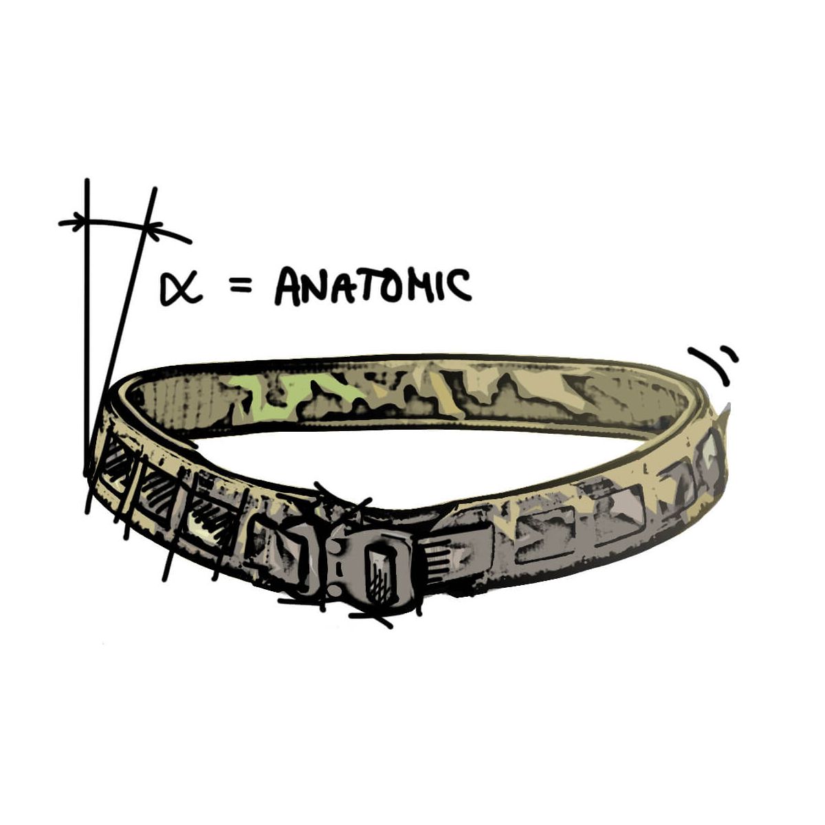 Cintura da combattimento (AWB = Anatomic War Belt) con sistema di aggancio MOLLE. Anatomicamente modellata, composta da due strati uniti da velcro con fibbia metallica di tipo Cobra. La cintura è comoda da indossare: la struttura conica riproduce la forma dei fianchi umani. Sistema di supporto:
