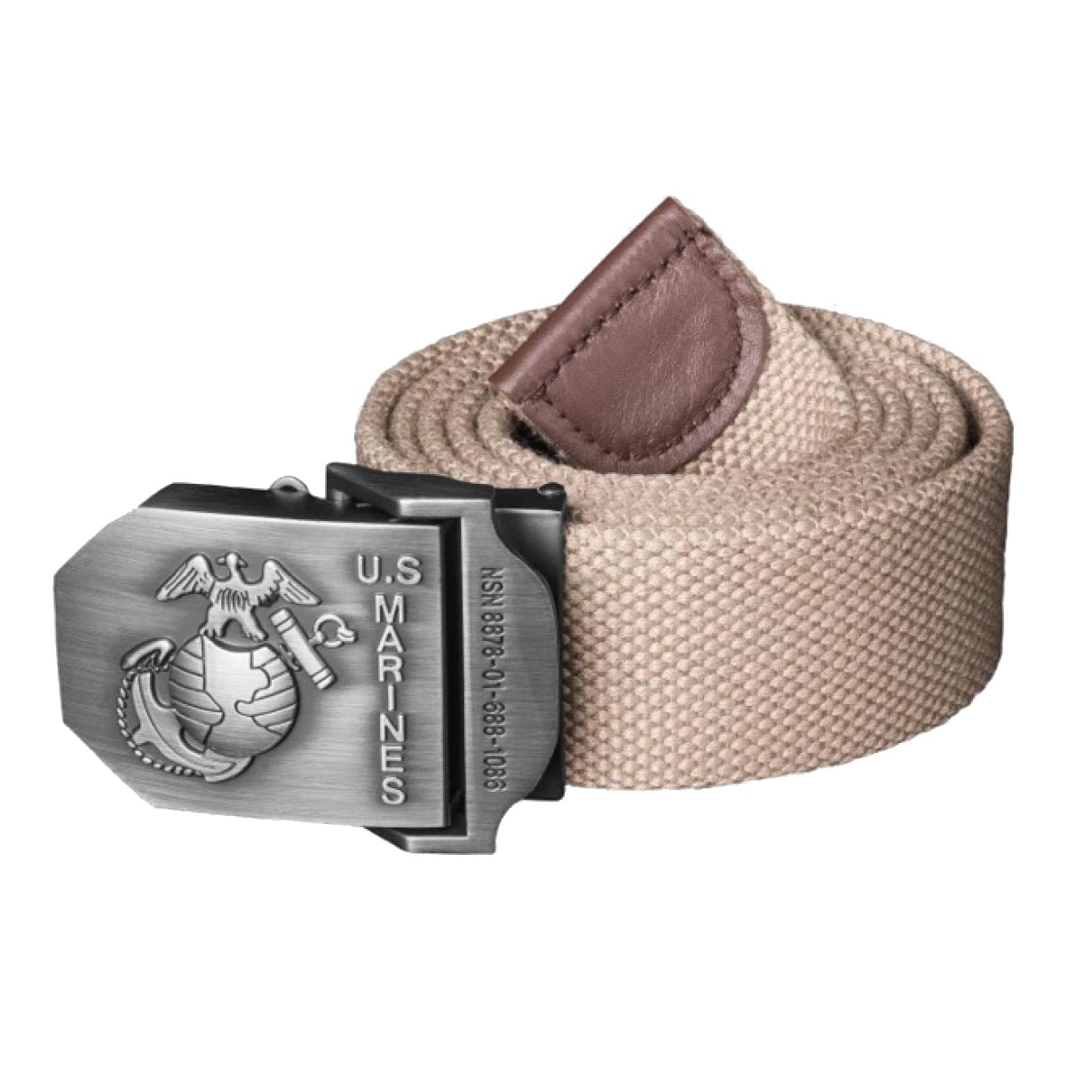 Cintura in cotone di alta qualità con fibbia in metallo. Fibbia elegante con inciso il simbolo del Corpo dei Marines degli Stati Uniti (USMC) e il numero NSN. Colore: sabbia. Lunghezza della cintura: circa 130 cm. Larghezza della cintura: circa 4 cm. Ulteriori informazioni
