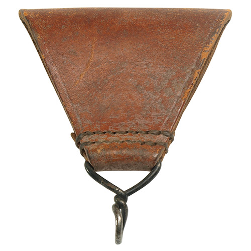 Utilizzato per fissare le bretelle in pelle alla cintura in pelle. Impiegato dall'esercito francese. Tuttavia, può essere utilizzato anche per appendere accessori dell'uniforme alla cintura. Articolo usato. Pelle naturale.