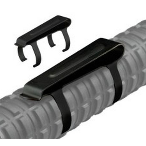 La clip metallica BC-01 si fissa facilmente al manganello telescopico, consentendo di portarlo nascosto alla cintura, all'interno o all'esterno dei pantaloni o su un giubbotto tattico.