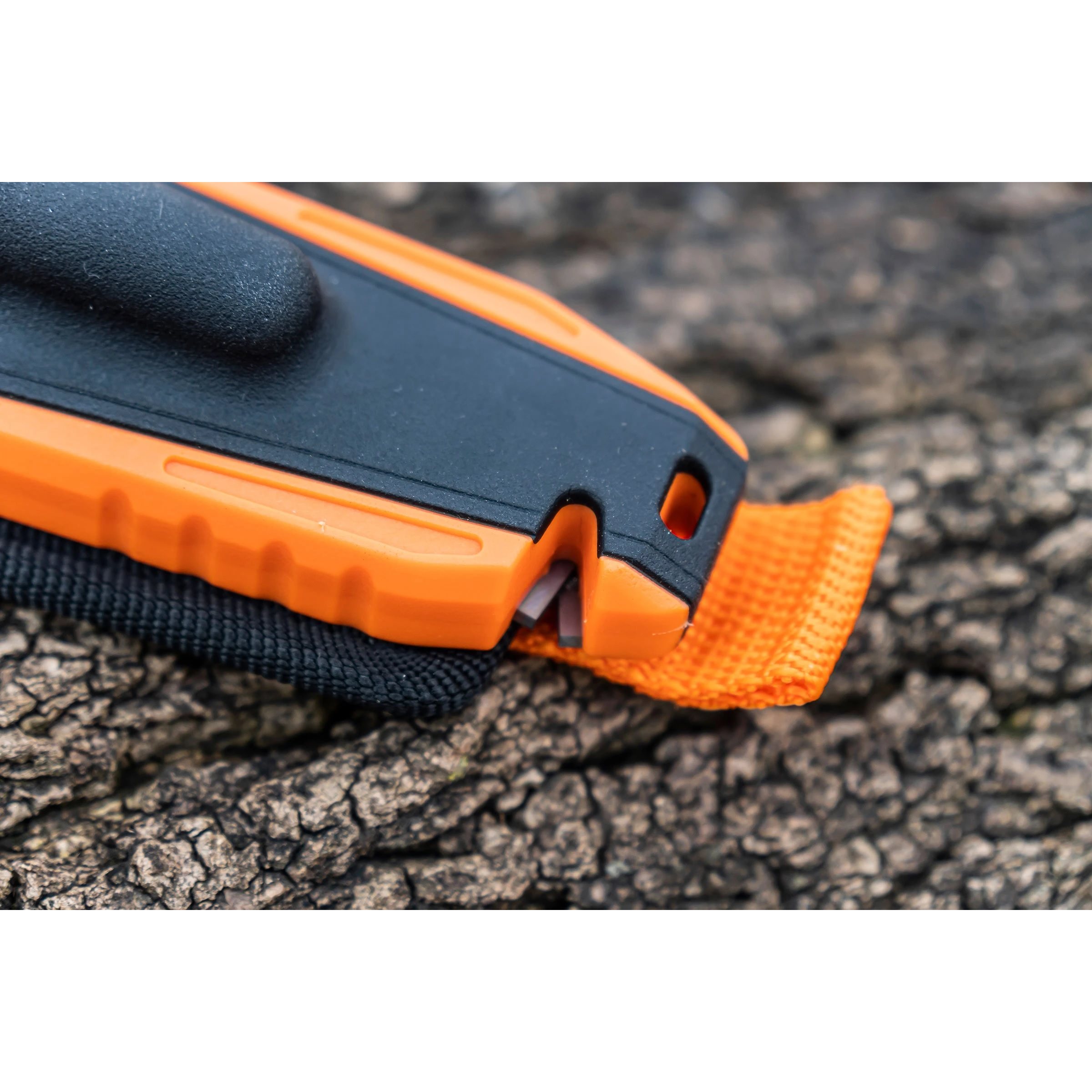 Nella custodia è riposto un accendino con scintilla e nella parte inferiore si trovano due lame affilate che fungono da taglierino. La custodia è realizzata in una combinazione di plastica e nylon ed è progettata per essere agganciata alla cintura.