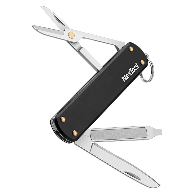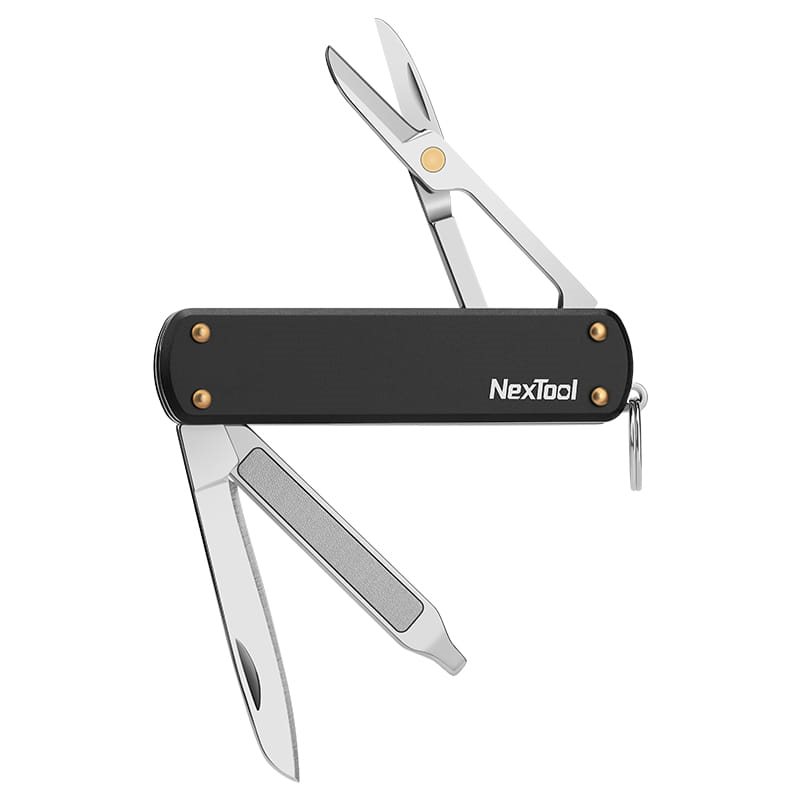 Coltellino tascabile minimalista con diversi strumenti utili. Gli strumenti del coltello sono realizzati in acciaio inossidabile 420J, mentre il manico è in alluminio 5052. Il peso è di soli 28,5 g.