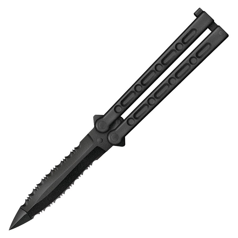 Coltello a farfalla interamente in plastica con lama doppia molto affilata e seghettata, prodotto dal rinomato produttore Cold Steel. Lunghezza totale 280 mm, lunghezza lama 127 mm. Materiale: Gri-Ex. Questo non è un coltello da allenamento. Ulteriori informazioni