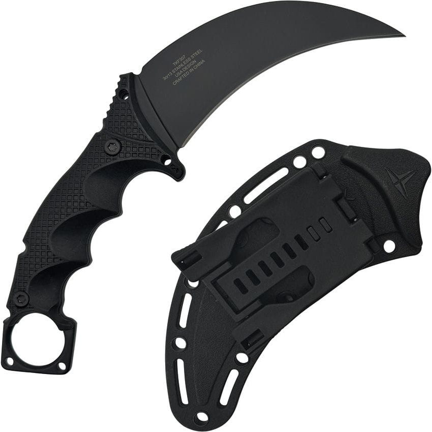 Karambit con struttura full tang e fodero autobloccante. La lama ricurva dello spessore di 3,67 mm è realizzata in acciaio 3CR13 con durezza 54-56 HRC e dotata di affilatura concava. I manici sono realizzati in materiale composito FRN, il coltello è disponibile con manici di colore nero e sabbia (coyote). Il fodero autobloccante in plastica è dotato di una fibbia in plastica che consente di fissare il coltello alla cintura e al sistema di aggancio modulare PALS/MOLLE. La fibbia può essere regolata per destrimani e mancini, per il trasporto verticale e orizzontale.