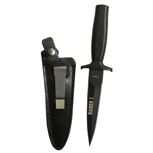 Piccolo coltello da combattimento RAIDER I su entrambi i lati, interamente in nero.