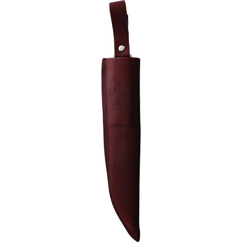 Tradizionale coltello scandinavo con lama fissa, caratterizzato da dimensioni compatte e utilizzo versatile. La lama con filo liscio è realizzata in resistente acciaio al carbonio con eccellente ritenzione del filo. Il manico anatomico è realizzato in compensato lucido. Il coltello è fornito con un fodero in pelle di alta qualità con motivi animali e impronte di animali.
