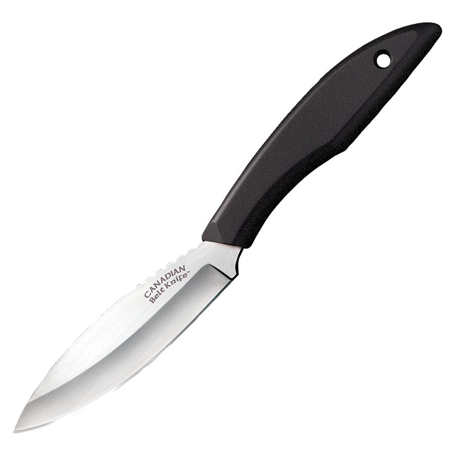 L'elegante coltello fisso Canadian Belt della Cold Steel si ispira al piccolo coltello omonimo del 1950. Per la produzione della nuova versione sono stati utilizzati i materiali più moderni. La lama è dotata di una levigatura liscia ed è stata realizzata in acciaio inossidabile tedesco 4116, ampiamente utilizzato in medicina. Il manico del coltello è in polipropilene, noto per la sua resistenza. All'estremità del manico è presente un foro per il passaggio di un cordino. Il coltello è fornito con un fodero in plastica.