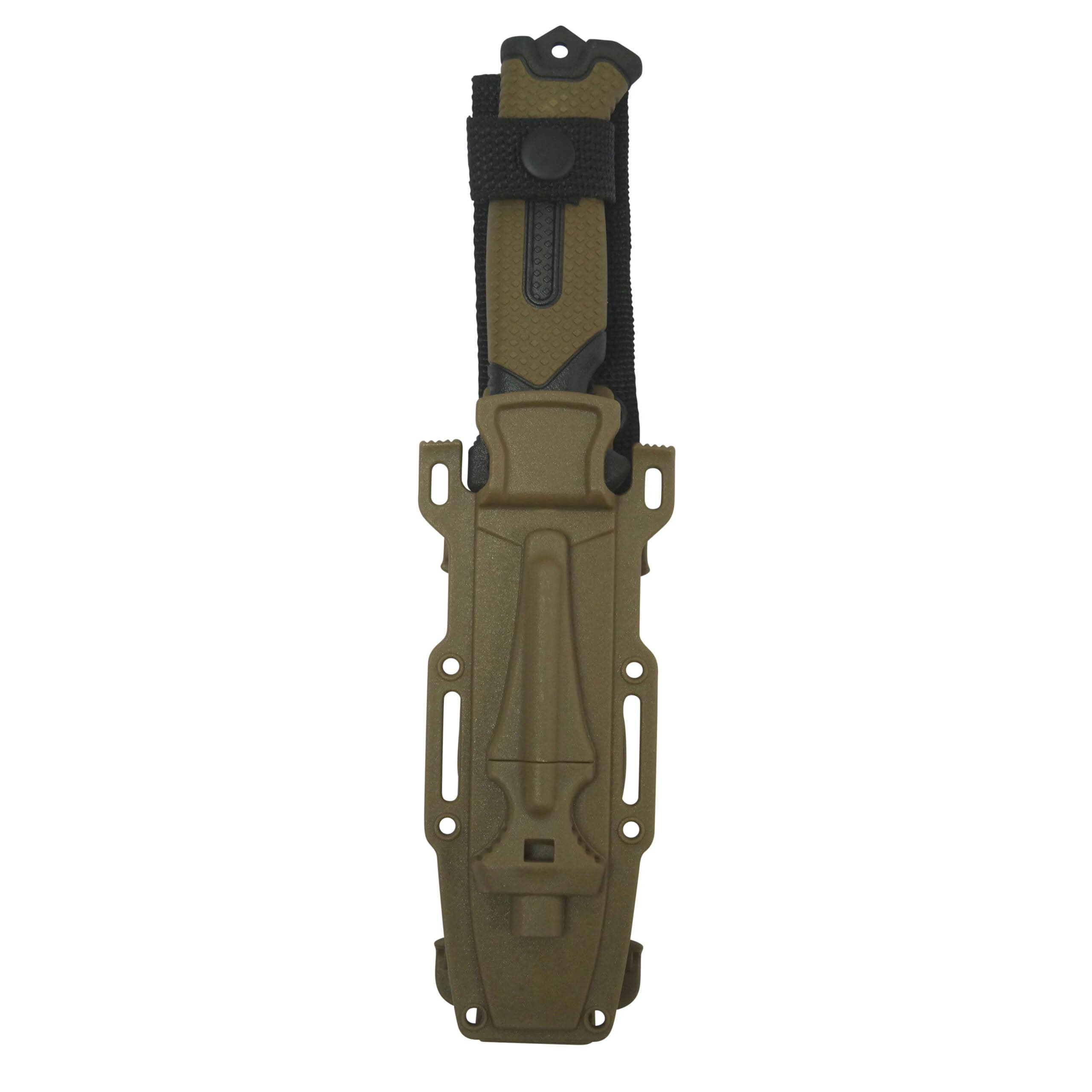 Coltello outdoor full tang con lama fissa e fodero in plastica con accendino di emergenza e fischietto integrati. Ulteriori informazioni