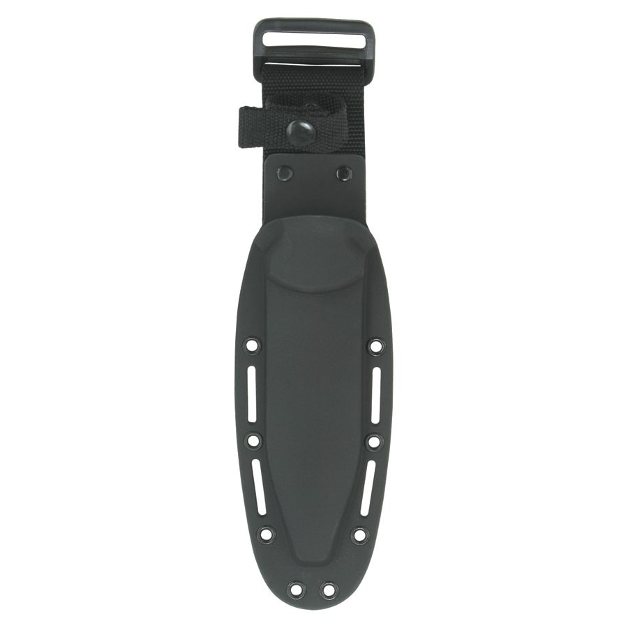 Il design full tang (il codolo attraversa l'intera lunghezza del coltello) consente l'applicazione di una maggiore forza per un periodo prolungato e rende il coltello più equilibrato. La lama nera garantisce una maggiore resistenza della superficie e, inoltre, in situazioni in cui potrebbe verificarsi una rivelazione, non attira l'attenzione dell'utente con riflessi, come potrebbe accadere con una lama lucida. La lama nera garantisce una maggiore resistenza della superficie e, inoltre, in situazioni in cui potrebbe verificarsi una rivelazione, non attira l'attenzione dell'utente con riflessi, come può accadere con i coltelli con lama argentata. All'estremità del manico è presente un foro per l'inserimento di un cordino. Il fodero in plastica, incluso nella confezione, può essere fissato alla cintura o, grazie ai fori sul perimetro del fodero, può essere fissato praticamente ovunque.