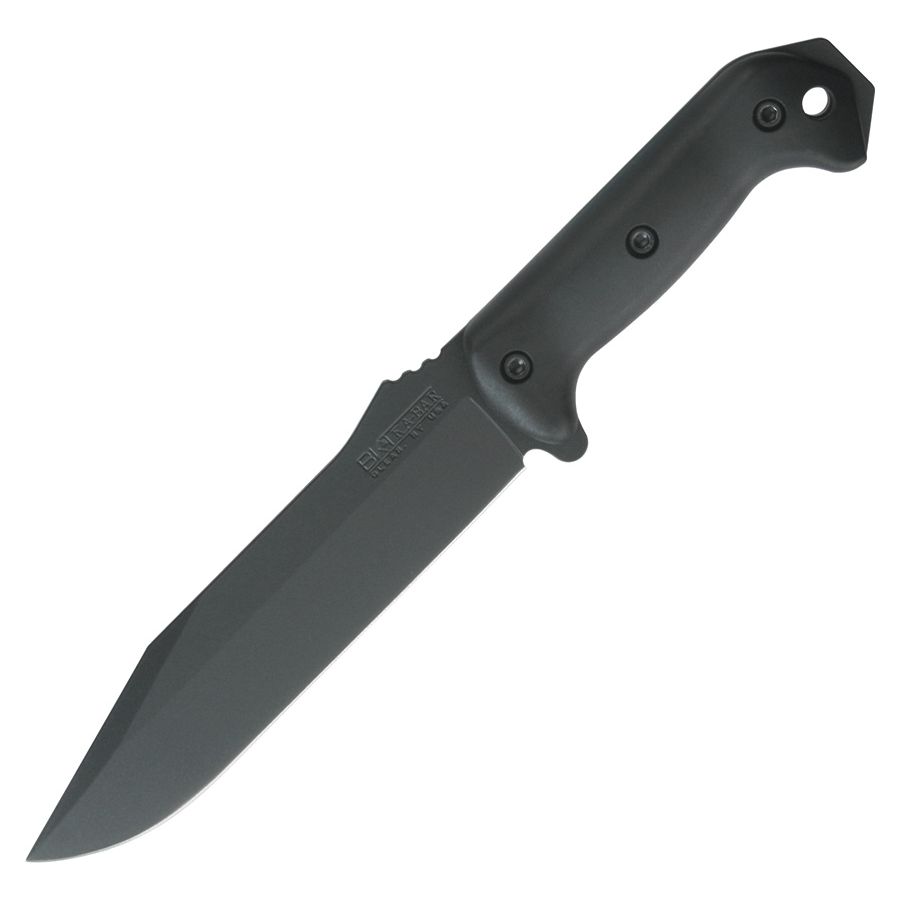 La struttura full tang (il codolo attraversa l'intera lunghezza del coltello) consente di esercitare una maggiore forza per un periodo di tempo prolungato e rende il coltello più equilibrato. La lama nera garantisce una maggiore resistenza della superficie e, inoltre, in situazioni in cui potrebbe essere visibile, non attira l'attenzione dell'utente con riflessi, come può accadere con i coltelli con lama argentata. All'estremità del manico è presente un foro per il passaggio di un cordino.