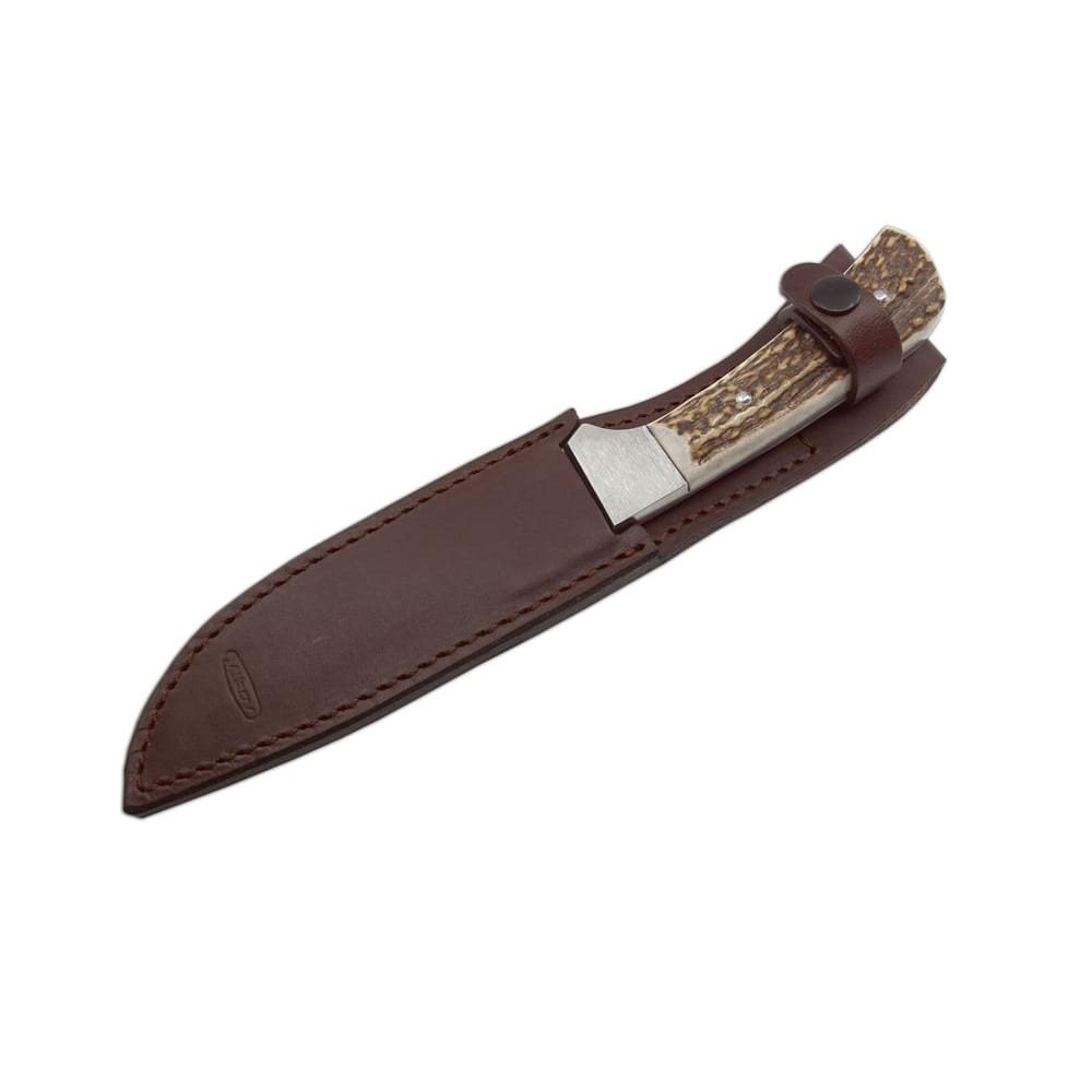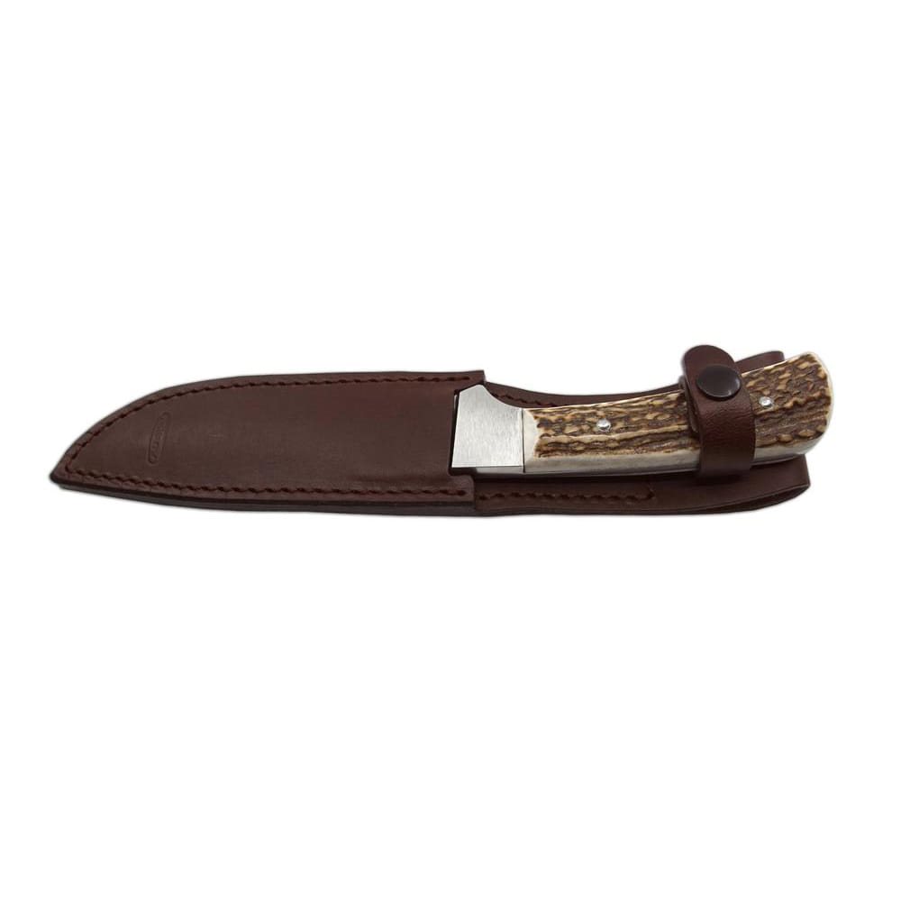 Con un peso totale di circa 250 g, si tratta di uno strumento davvero robusto. I manici sono realizzati in vero corno di cervo e conferiscono al coltello da caccia LES una forma robusta. Il pugnale viene fornito di serie con un fodero in pelle.