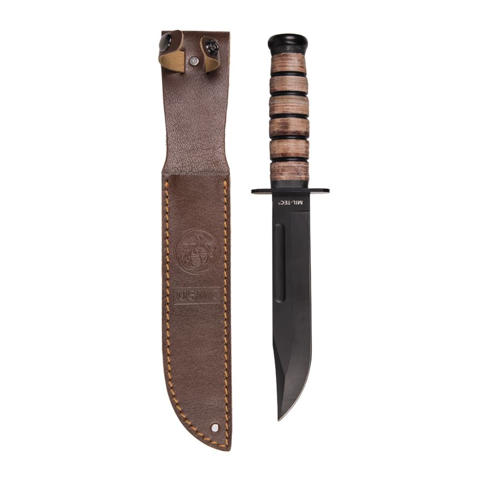 Replica del coltello americano USMC. Lama liscia, lama in acciaio inossidabile, fodero in pelle. Lunghezza lama: circa 17 cm. Lunghezza totale: circa 30 cm. Ulteriori informazioni