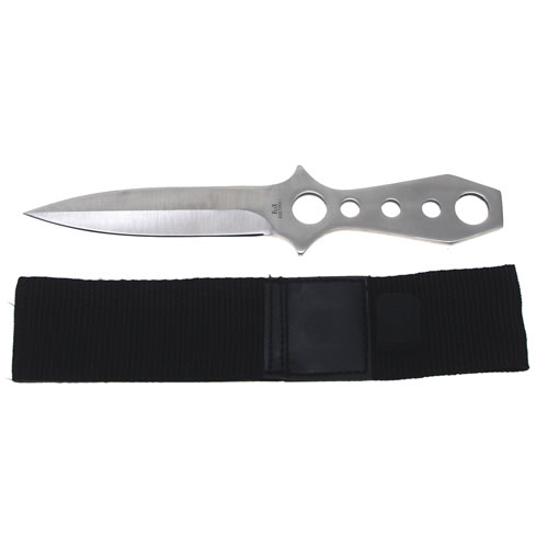 Coltello da lancio leggero ed equilibrato. /Disponibile anche in colore nero/. La lama è affilata su entrambi i lati e si assottiglia in una punta affilata. Il coltello è dotato di un fodero in nylon da agganciare alla cintura.