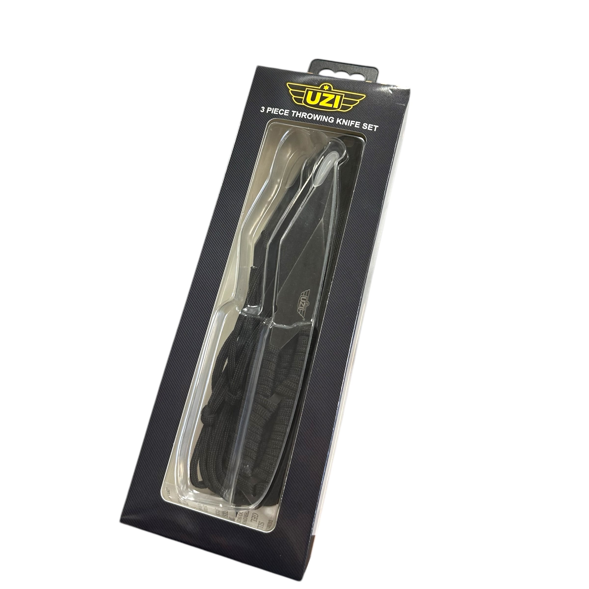 Set di tre coltelli da lancio full-tang riposti in una pratica custodia in nylon per un facile trasporto. I coltelli con lama liscia sono realizzati in acciaio inossidabile con finitura stonewash. I manici sono perforati per alleggerirli e avvolti con cordino paracord, che consente una presa salda e sicura in qualsiasi situazione. I coltelli sono dotati di un foro con cordino di sicurezza.