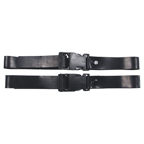 fodero in plastica con cinturini in gomma e chiusura con piccola fibbia in plastica per il fissaggio al corpo