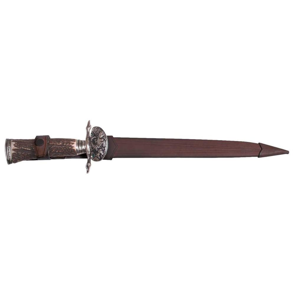 Il pugnale da caccia denominato KING funge da spada di iniziazione per i nuovi membri delle associazioni venatorie e di caccia. È realizzato in acciaio inossidabile di alta qualità tipo 420 con durezza 52-55HRc. L'impugnatura del pugnale KING è realizzata in vero corno di cervo e ha una forma ergonomica. La guardia e la montatura posteriore sono riccamente decorate. Il pugnale viene fornito di serie con un fodero in pelle.
